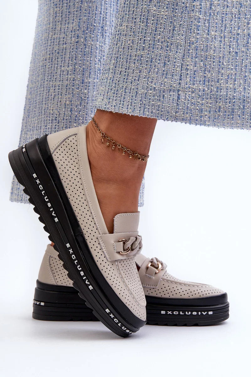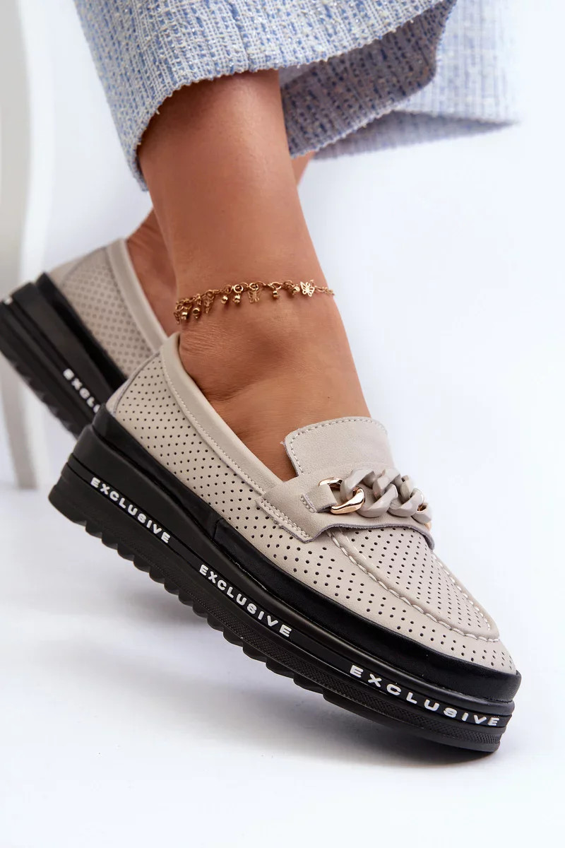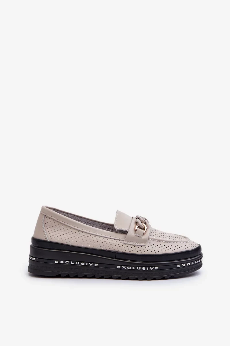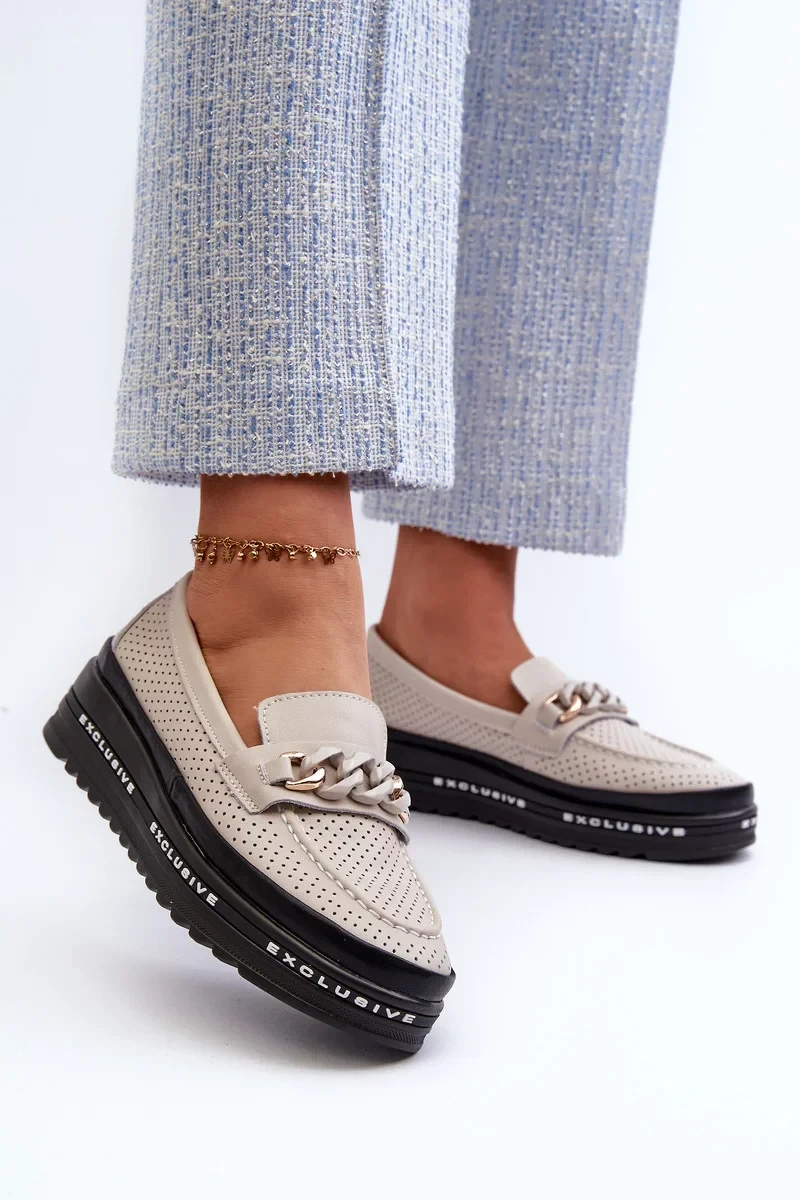 Dámské Kožené mokasíny Na Platformě S řetízkem S.Barski béžová