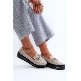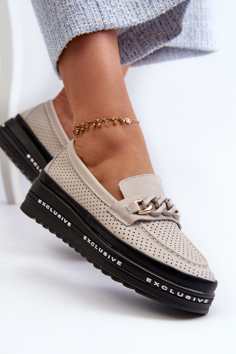 Dámské kožené mokasíny na platformě s řetízkem S.Barski LR618 béžové