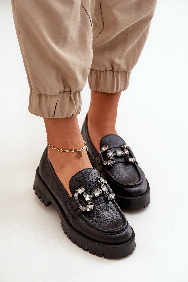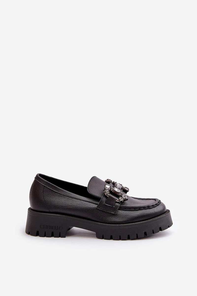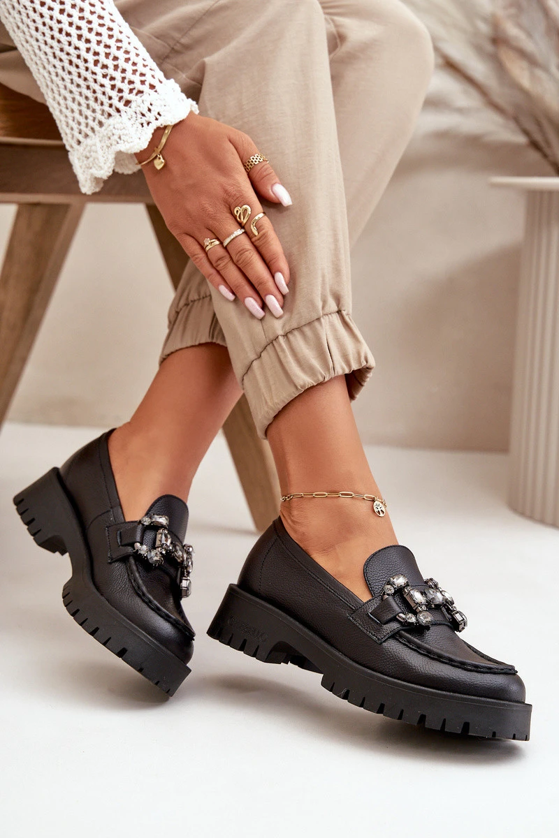 Dámské Kožené Mokasíny S Dekorací Černé CheBello 4369