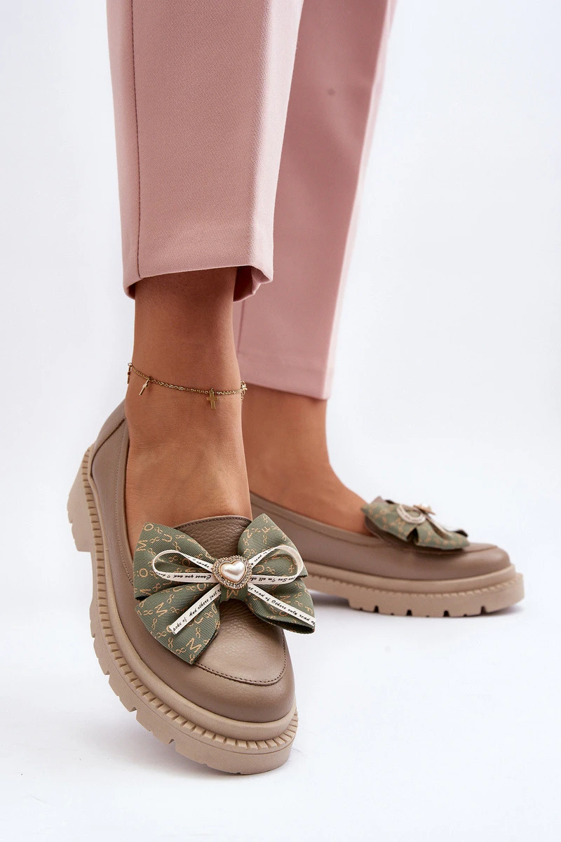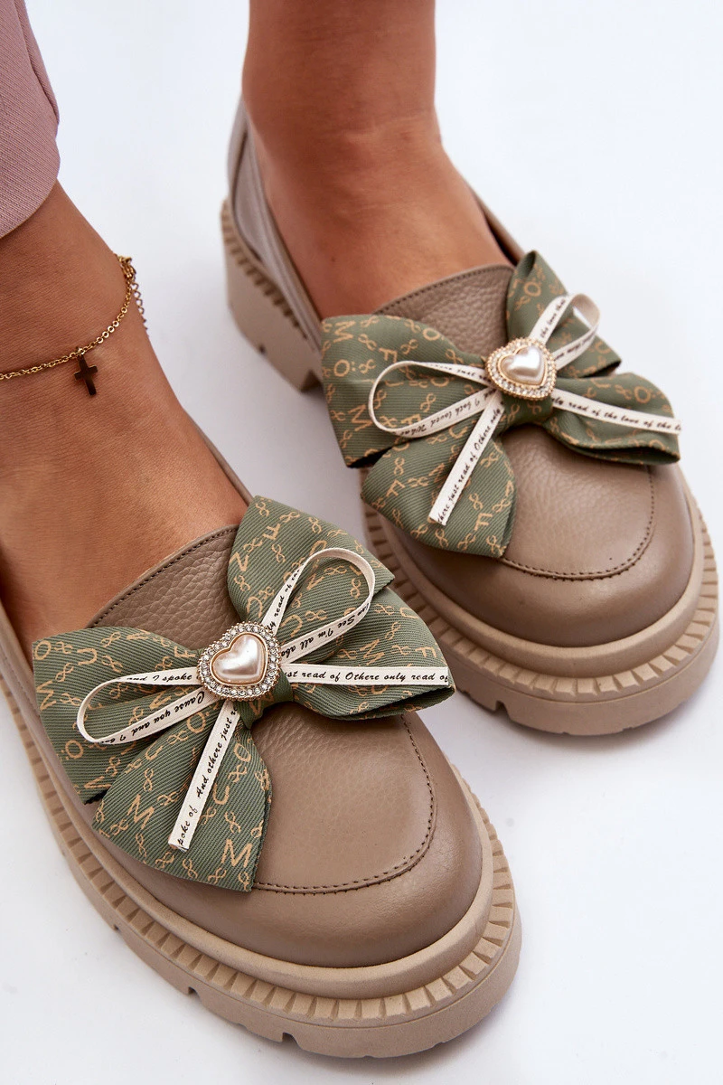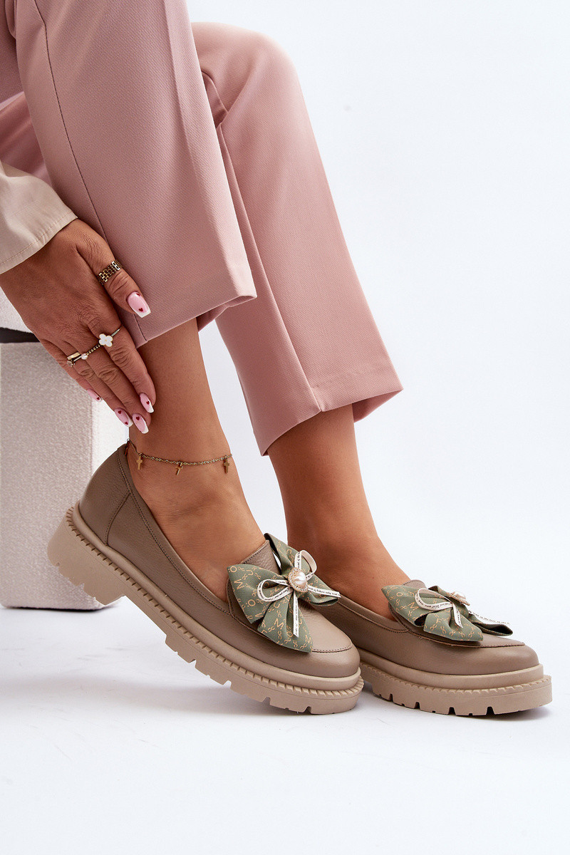 Dámské kožené mokasíny s mašlí Laura Messi 2787 Beige