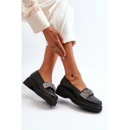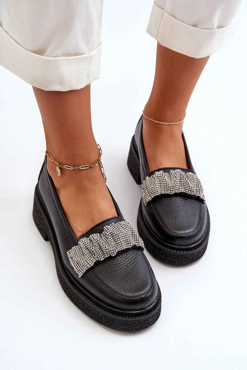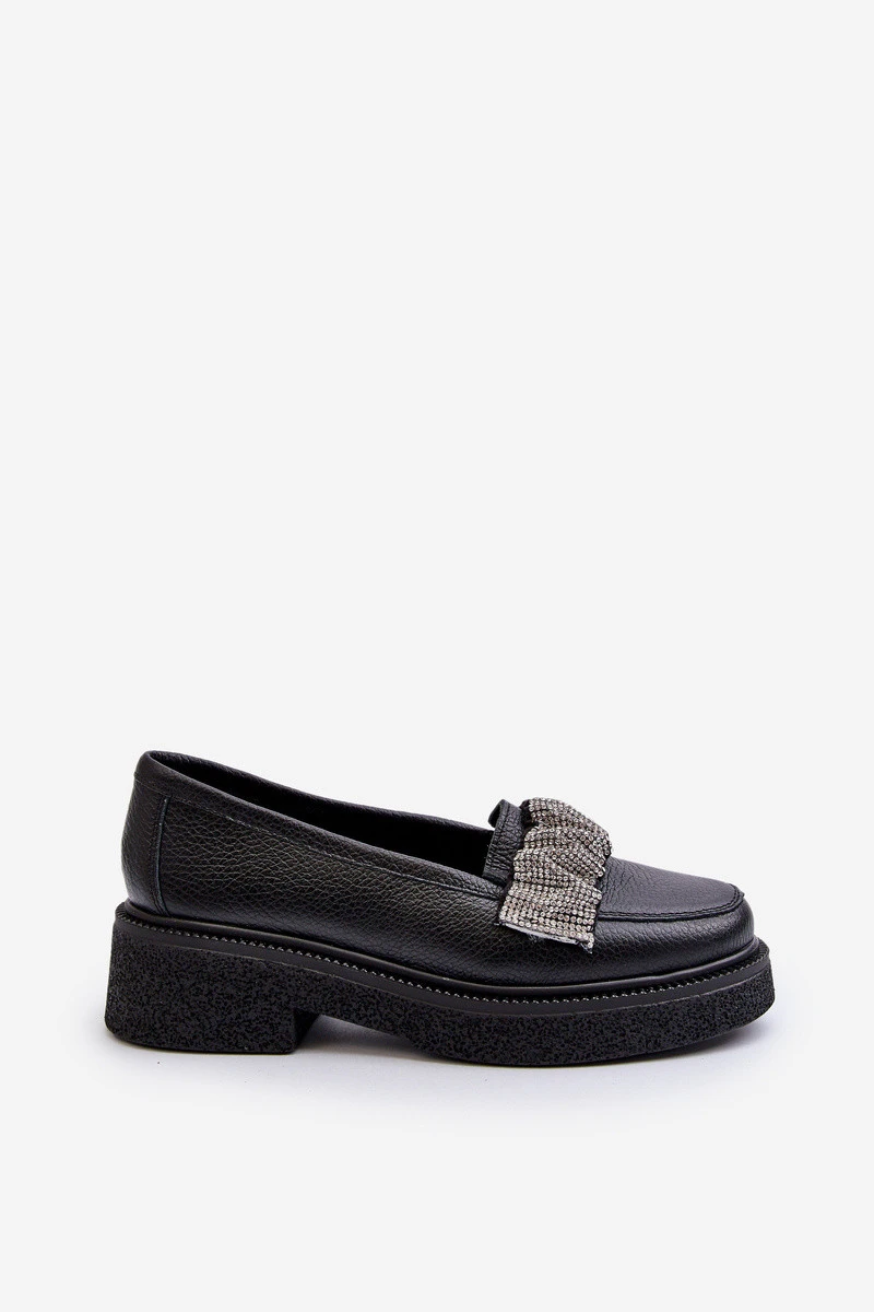 Dámské kožené mokasíny s ozdobným páskem Zazoo 3419 Černé