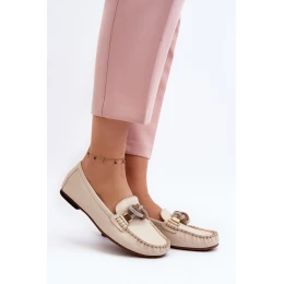 Dámské kožené mokasíny s ozdobou Laura Messi 2761 béžové