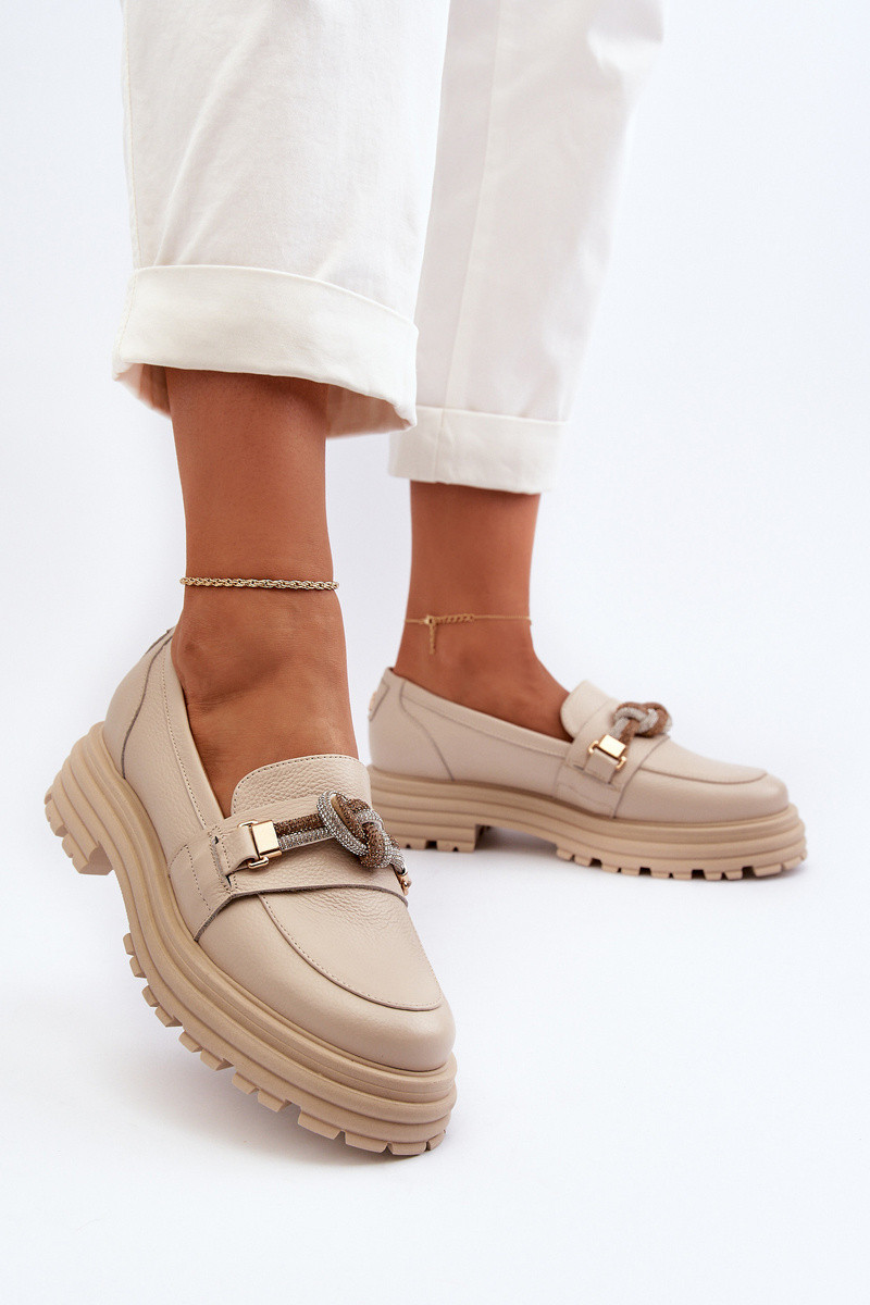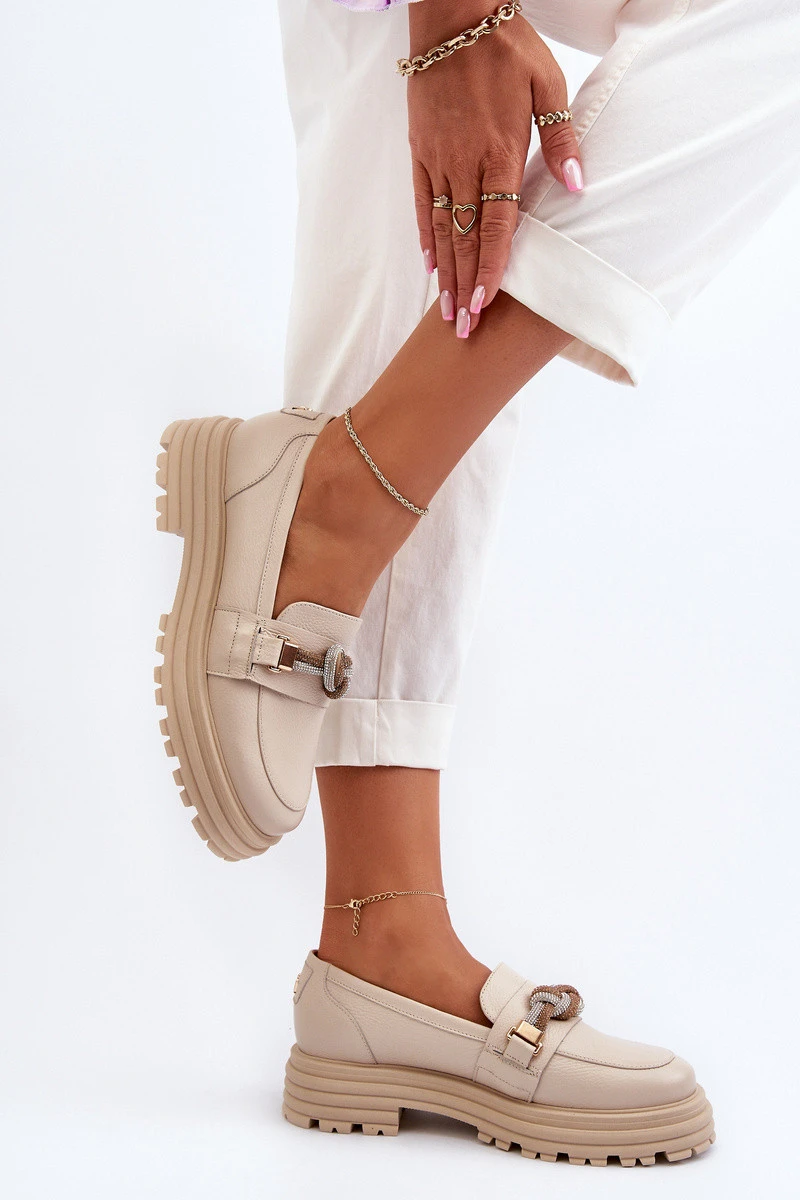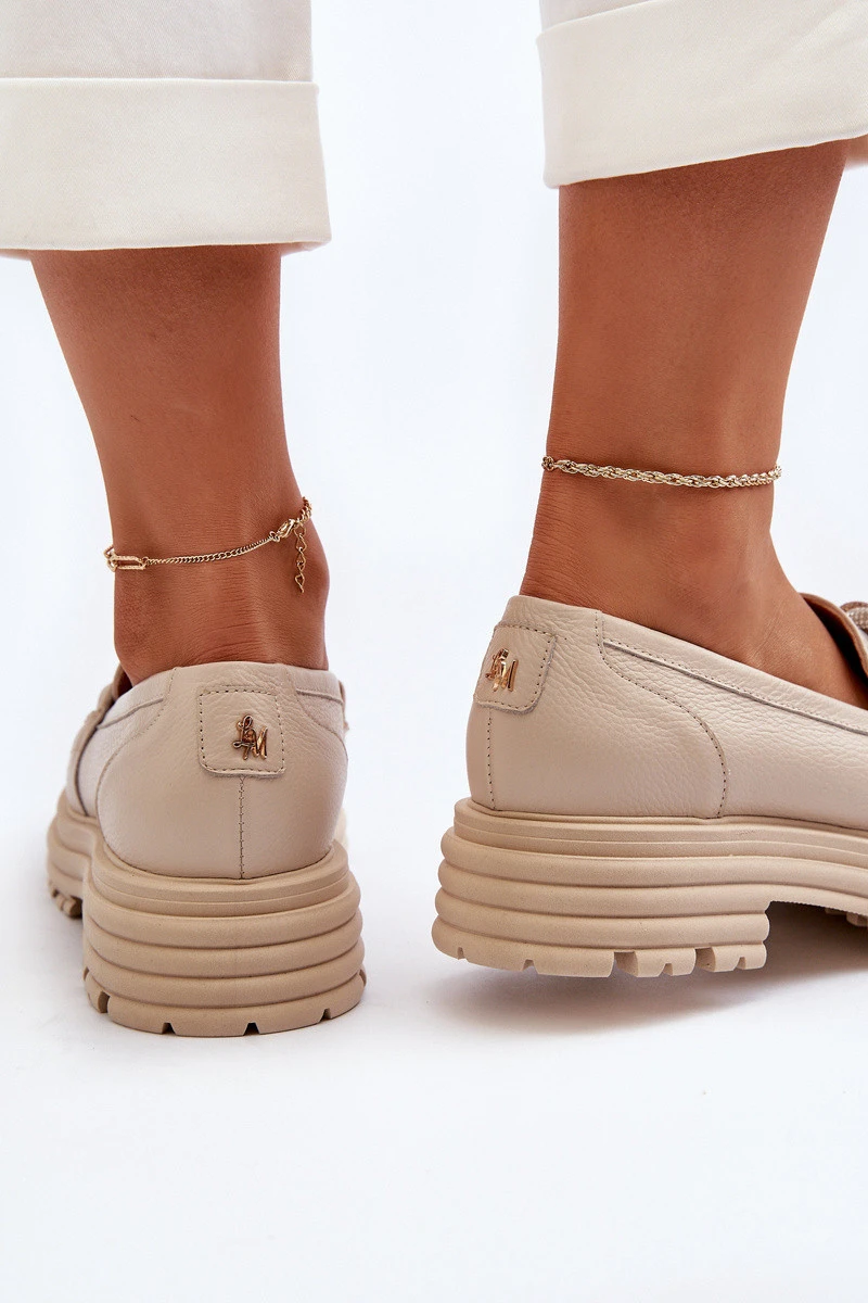 Dámské kožené mokasíny s ozdobou Laura Messi 2780 béžové