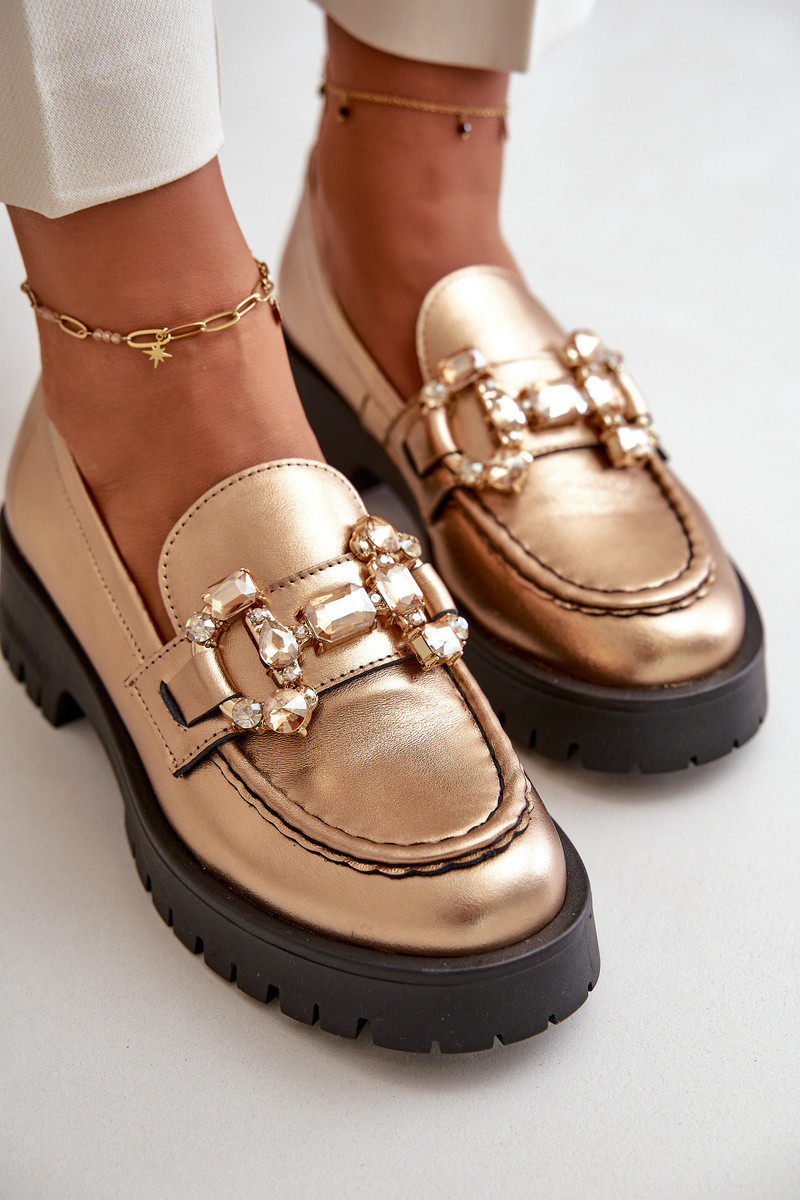 Dámské kožené mokasíny s ozdobou model 21667878 béžové - CheBello