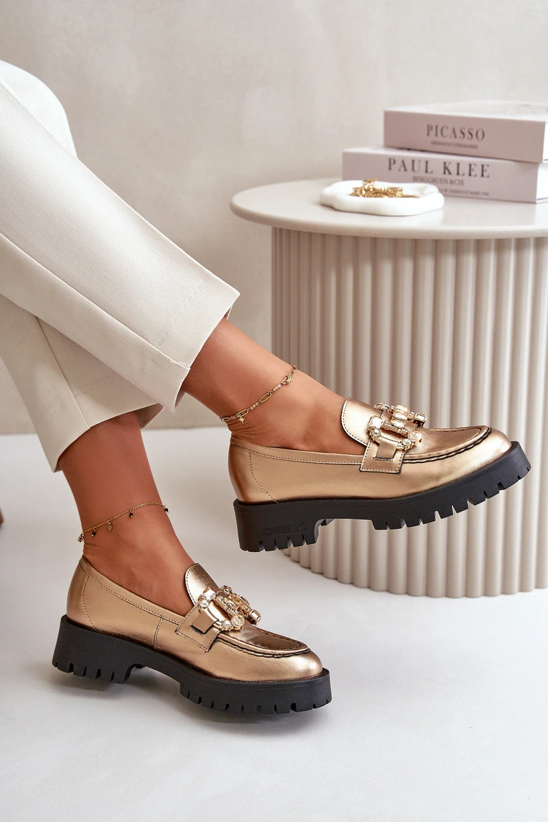 Elegantní mokasíny od značky CheBello. Vyrobeno z vysoce kvalitní přírodní kůže. Uloženo na plochém, masivním podpatku. Špičky jsou zaoblené. Tento model má ozdobu vpředu. Kožená stélka zajišťuje pohodlí při nošení. Tento střih dokonale doplní stylizaci s kalhotami, sukněmi a šaty. Určitě byste je měly mít ve své jarní garderobě. Při výběru velikosti se řiďte tabulkou velikostí.