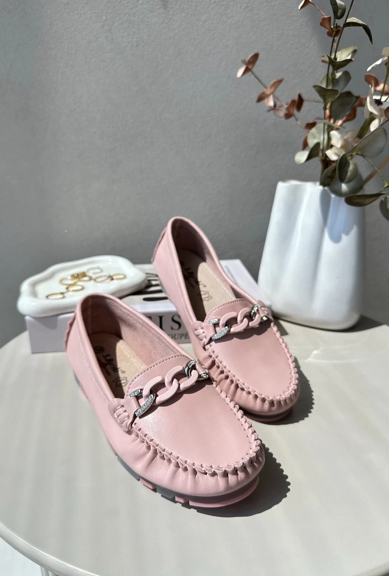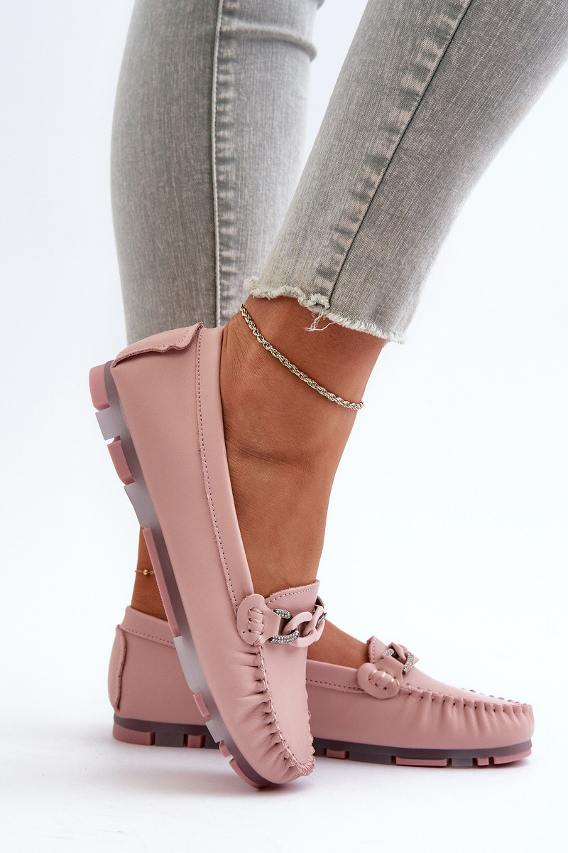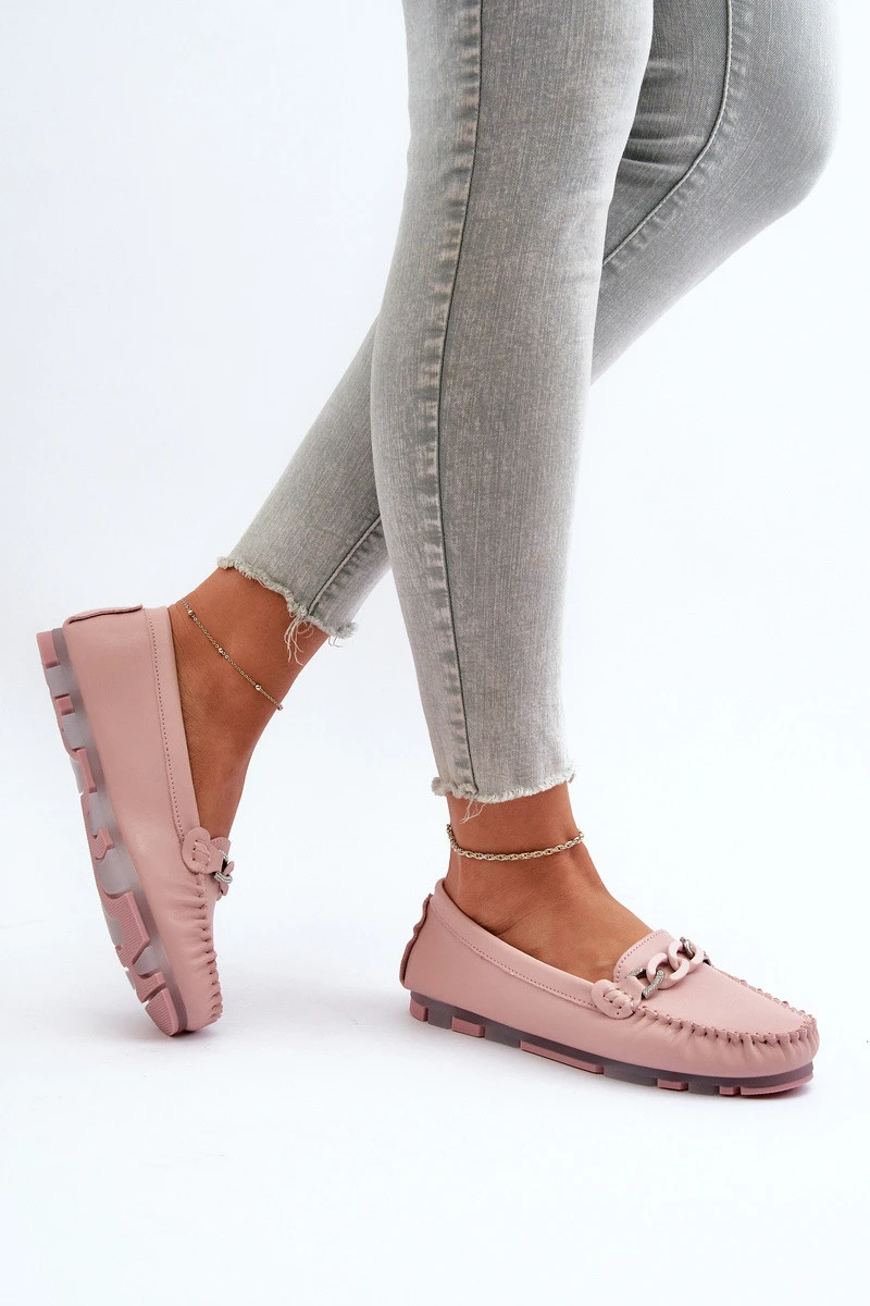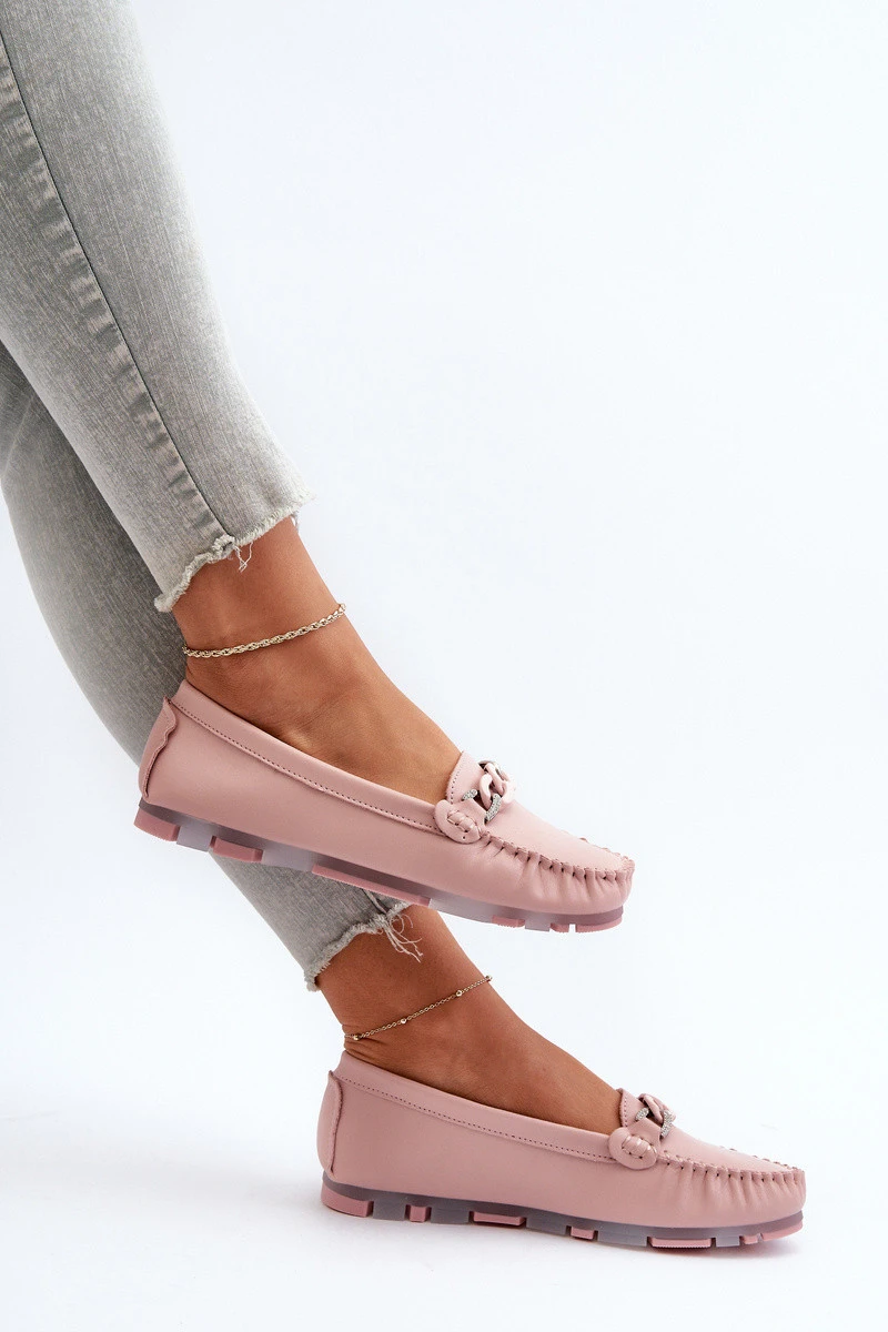 Dámské kožené mokasíny s ozdobou růžové S.Barski LR339