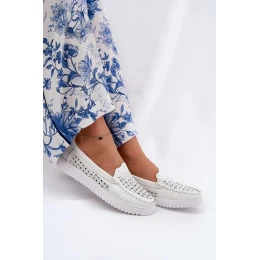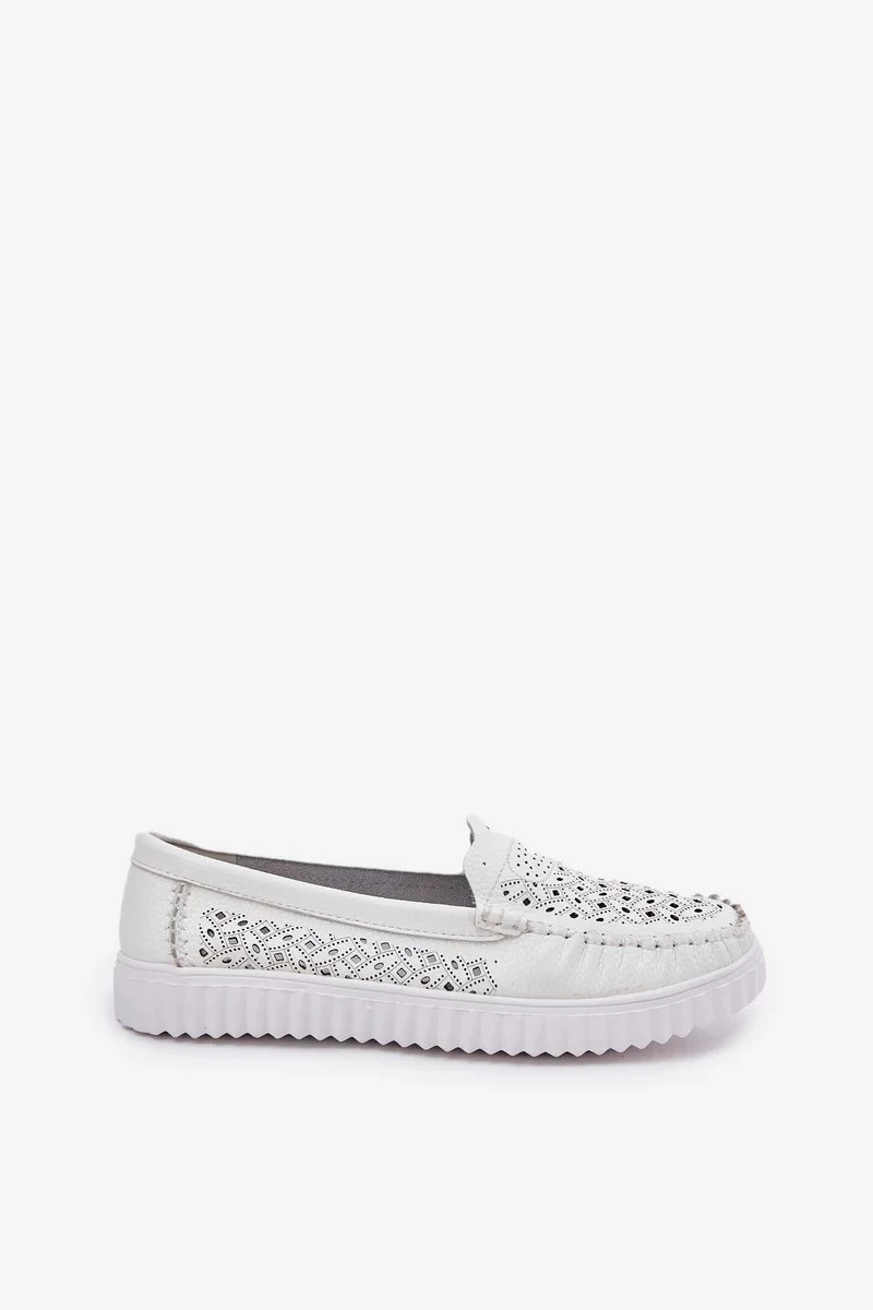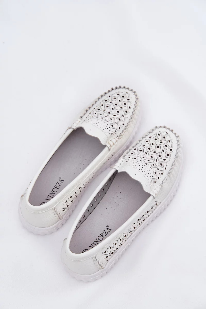 Dámské kožené mokasíny s perforovaným vzorem Vinceza – bílé