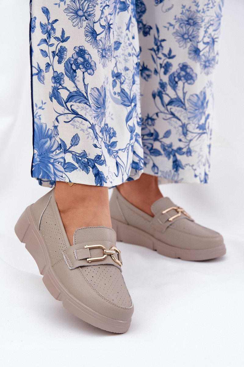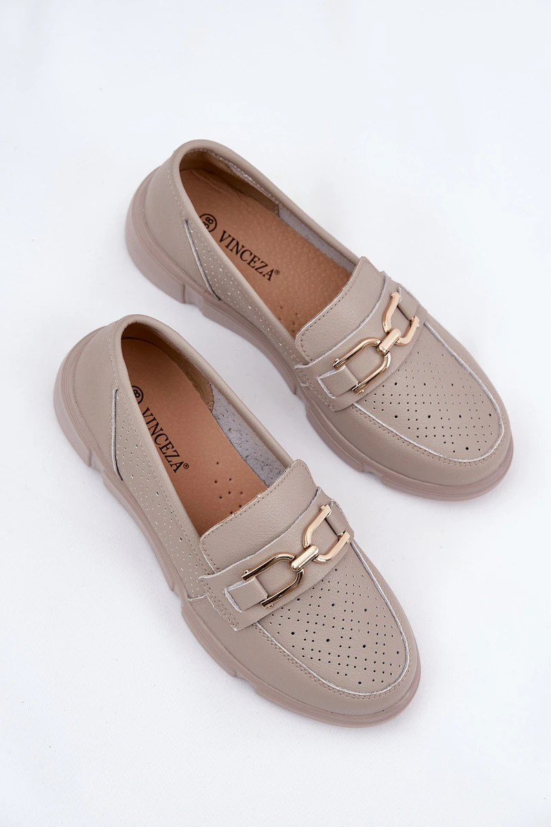 Dámské Kožené Mokasíny se Zlatým Detalem Ciemnobeżowe Vinceza 88007