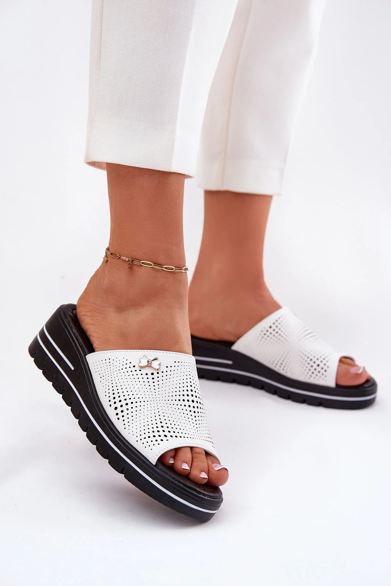 Dámské kožené pantofle na klínu model 21695138 bílé - VINCEZA