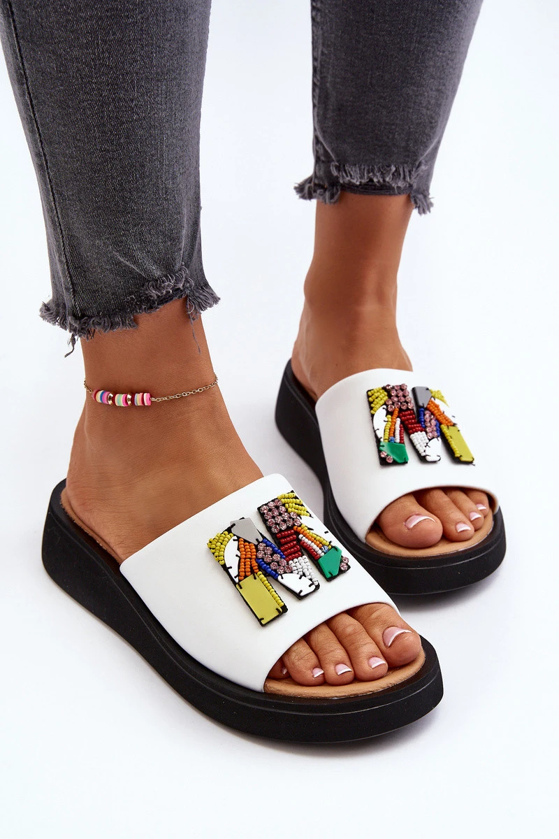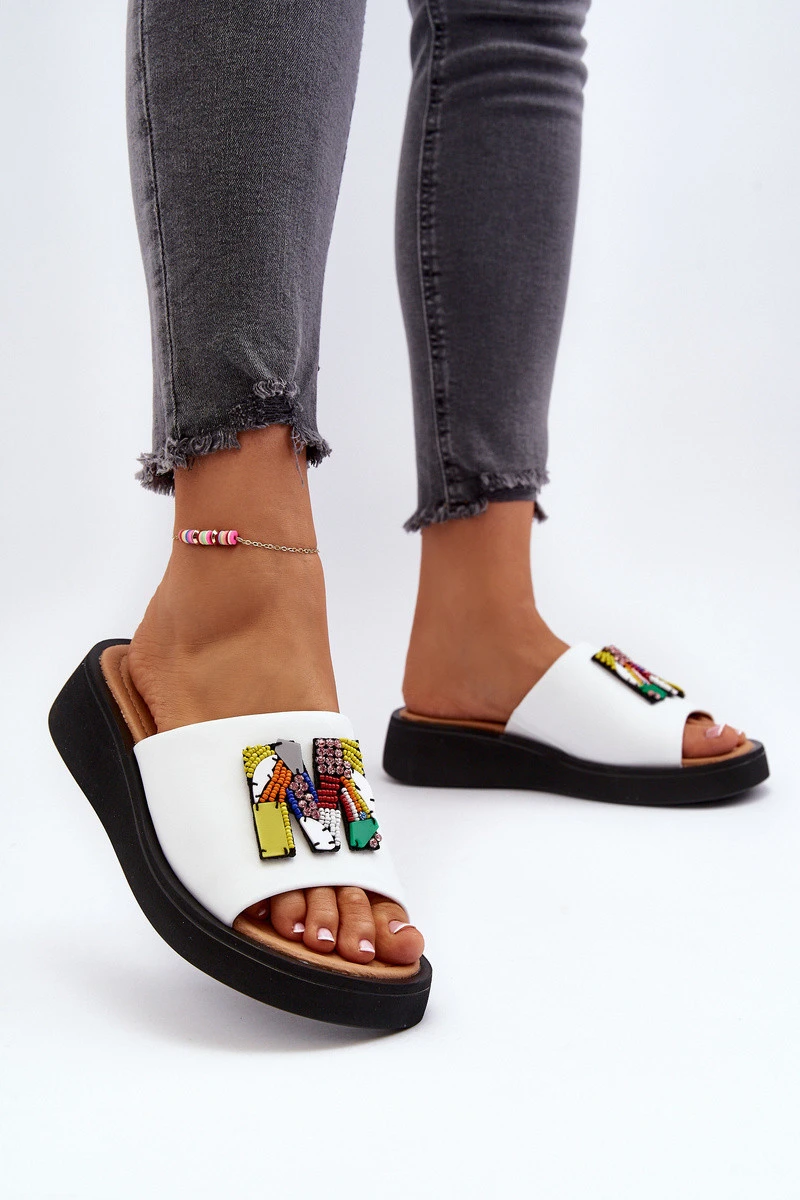 Dámské kožené pantofle na platformě s ozdobou Béžové Monroe