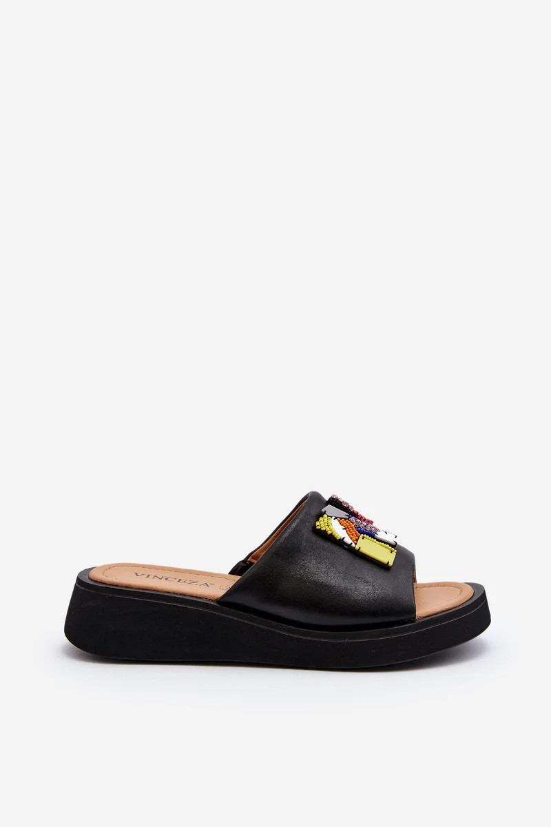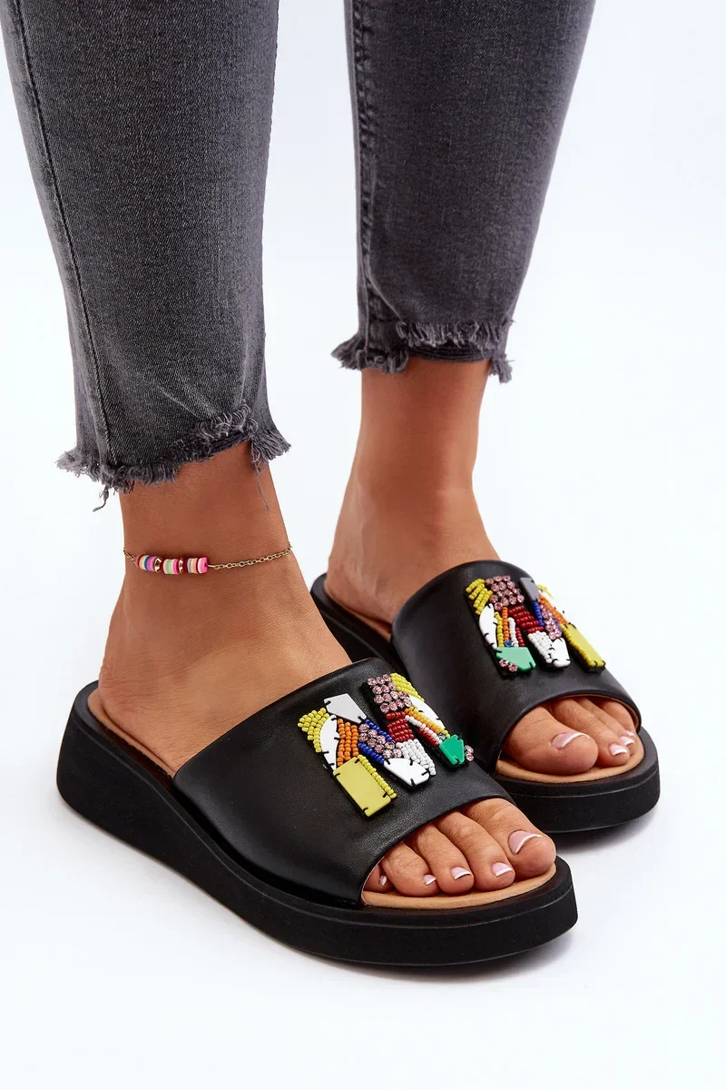 Přidání recenze k Dámské kožené pantofle s černým zdobením Asames