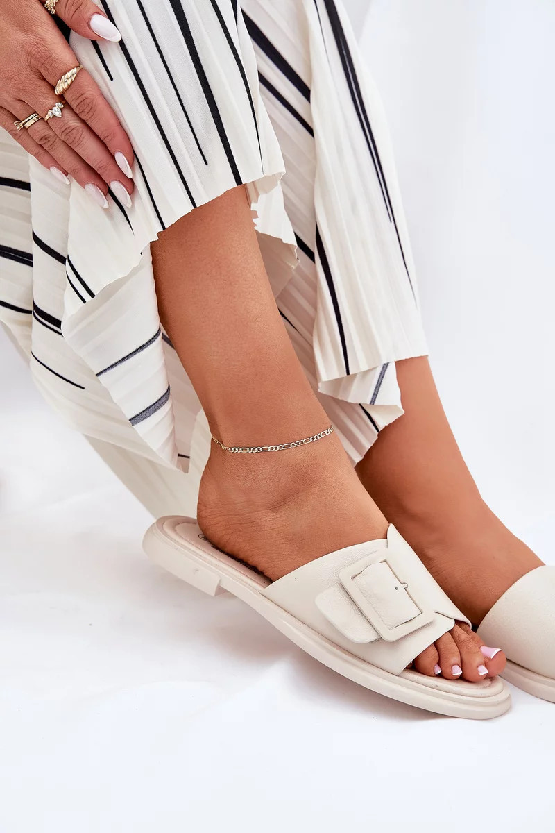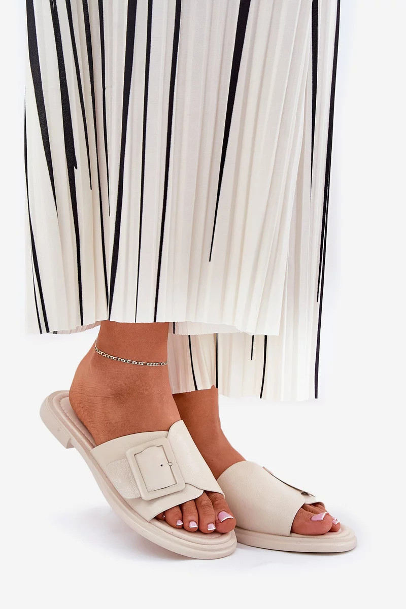Dámské pantofle D&A jsou vyrobené z kvalitní kůže v elegantním béžovém odstínu, který působí nadčasově a univerzálně. Praktická přezka umožňuje individuální přizpůsobení šířky nártu a zároveň dodává obuvi stylový detail. Pantofle nabízejí pohodlné nošení vhodné pro celodenní využití – doma i venku.
