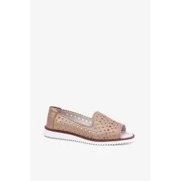 Dámské kožené perforované baleríny s otevřenou špičkou S.Barski – zlaté