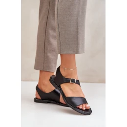 Dámské kožené ploché sandály Zazoo 3014 černé