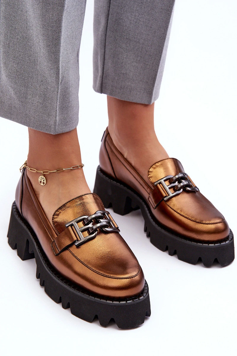 Dámské kožené polobotky Loafersy s ozdobou zlatou Lyndani