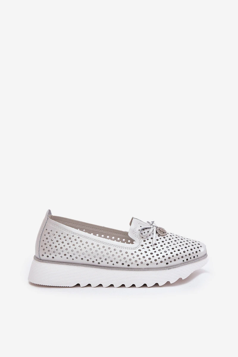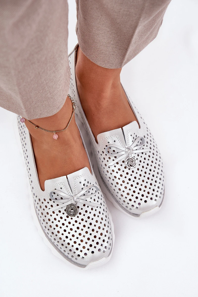 Dámské Kožené Polobotky S Ažurovým Designem Z Přírodní Kůže D&A LR51-631 Stříbrné