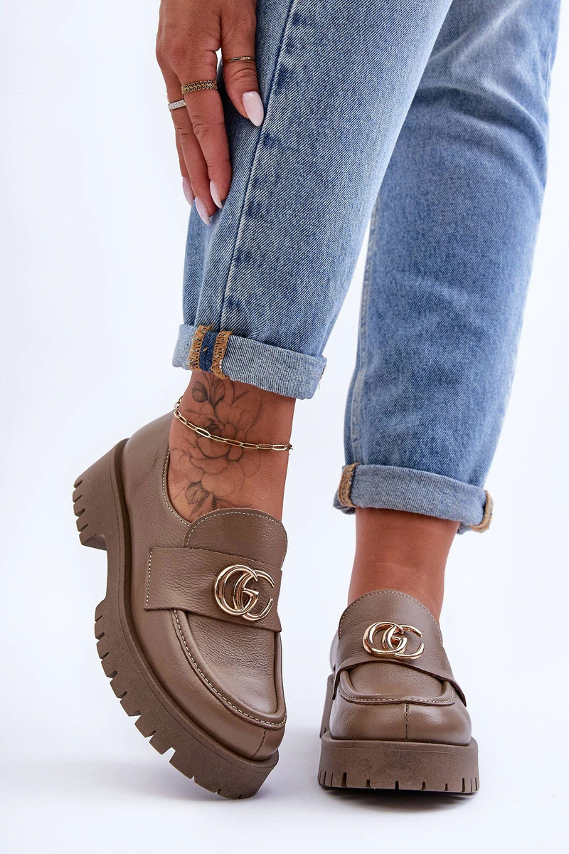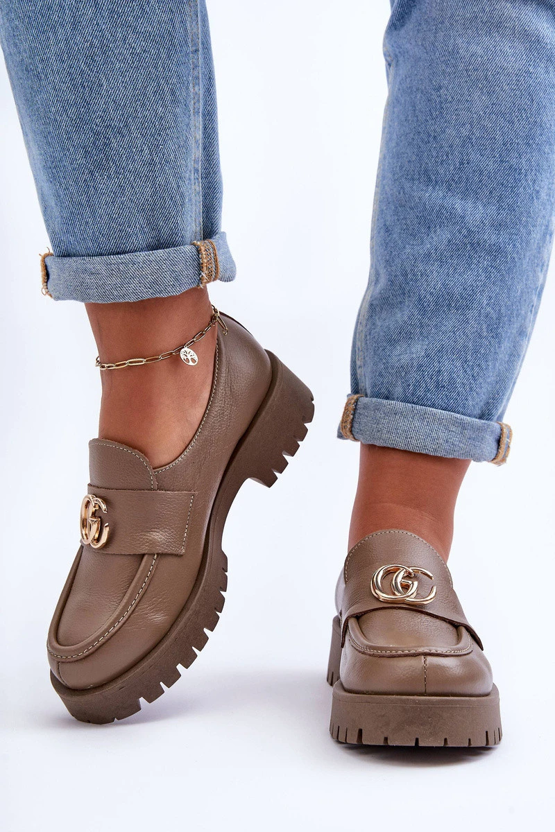 Dámské kožené polobotky s ozdobou tmavě béžové model 21630054 - Laura Messi