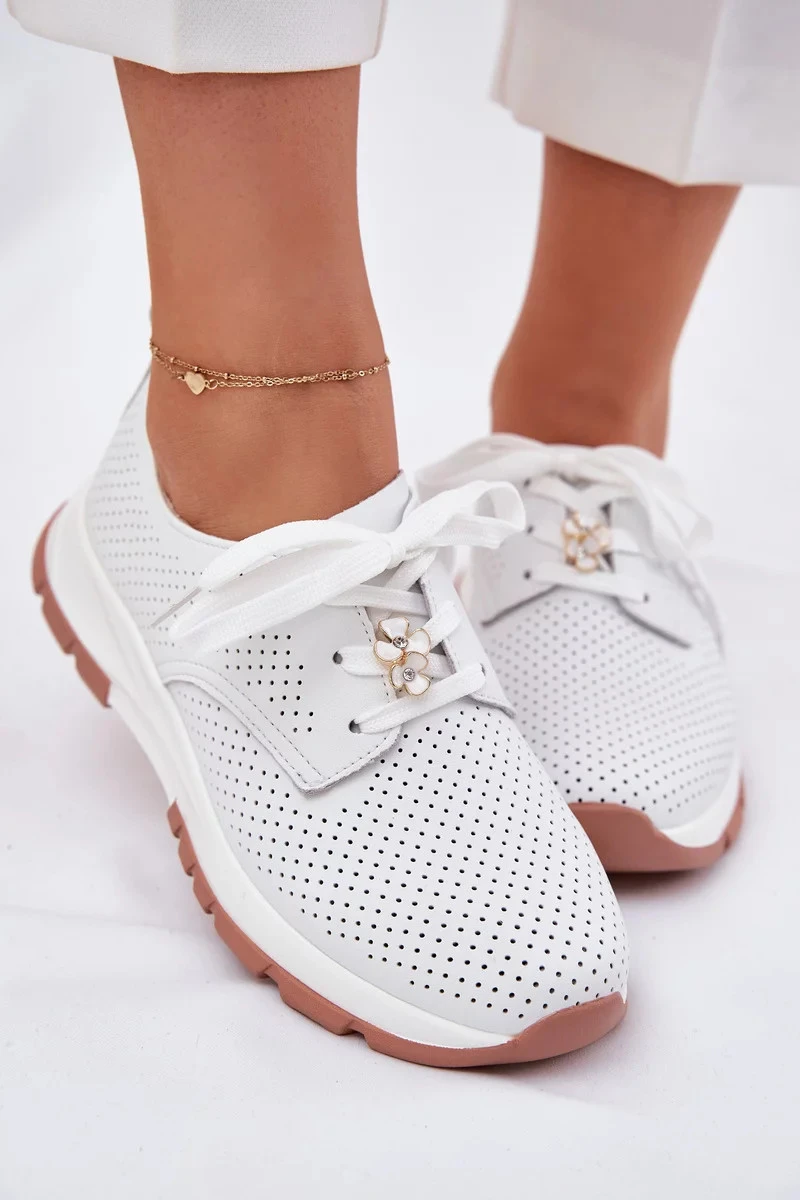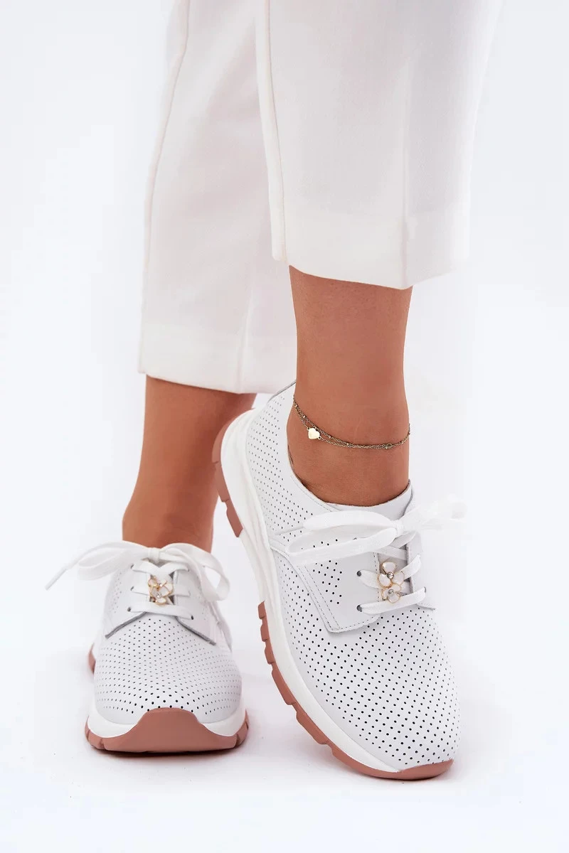 Dámské kožené polobotky s připínacím doplňkem Artiker – bílé