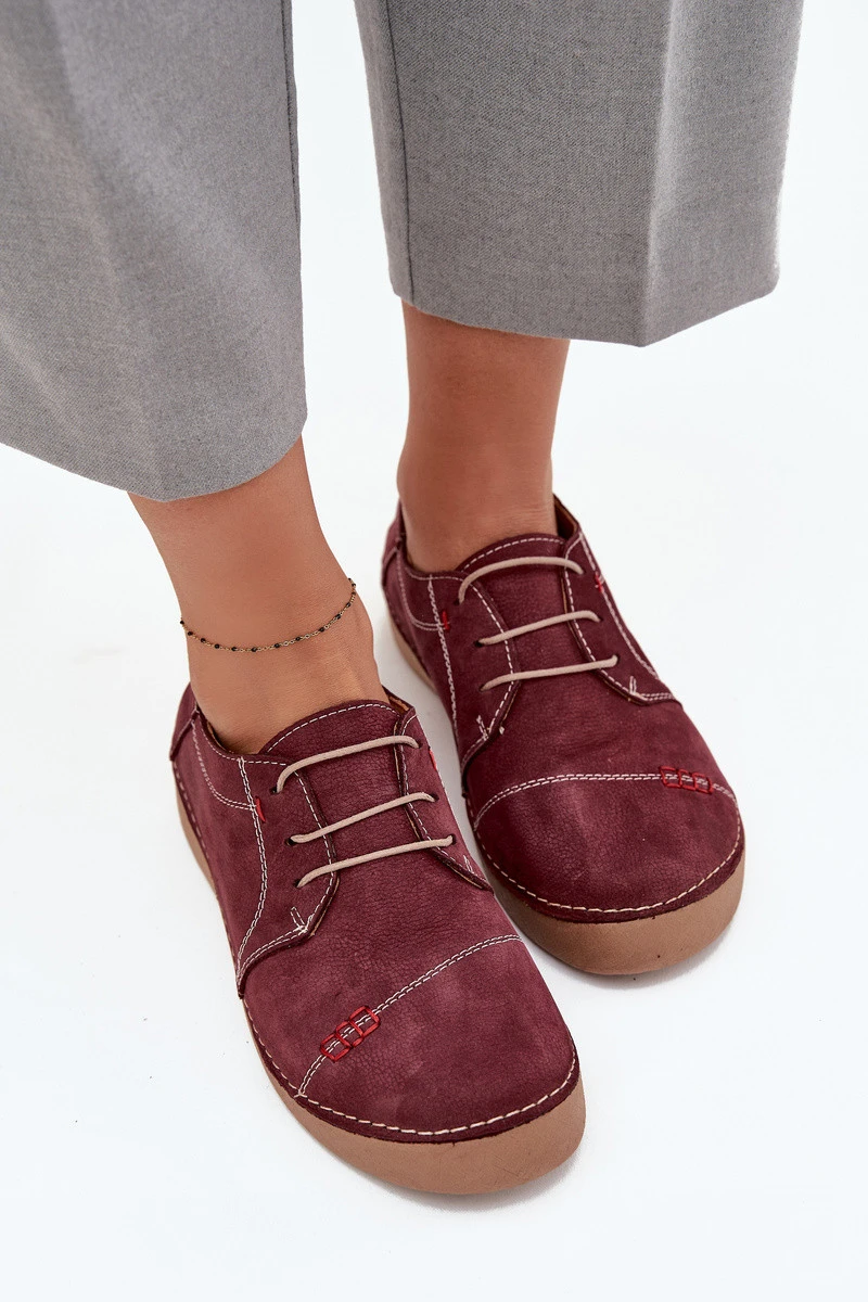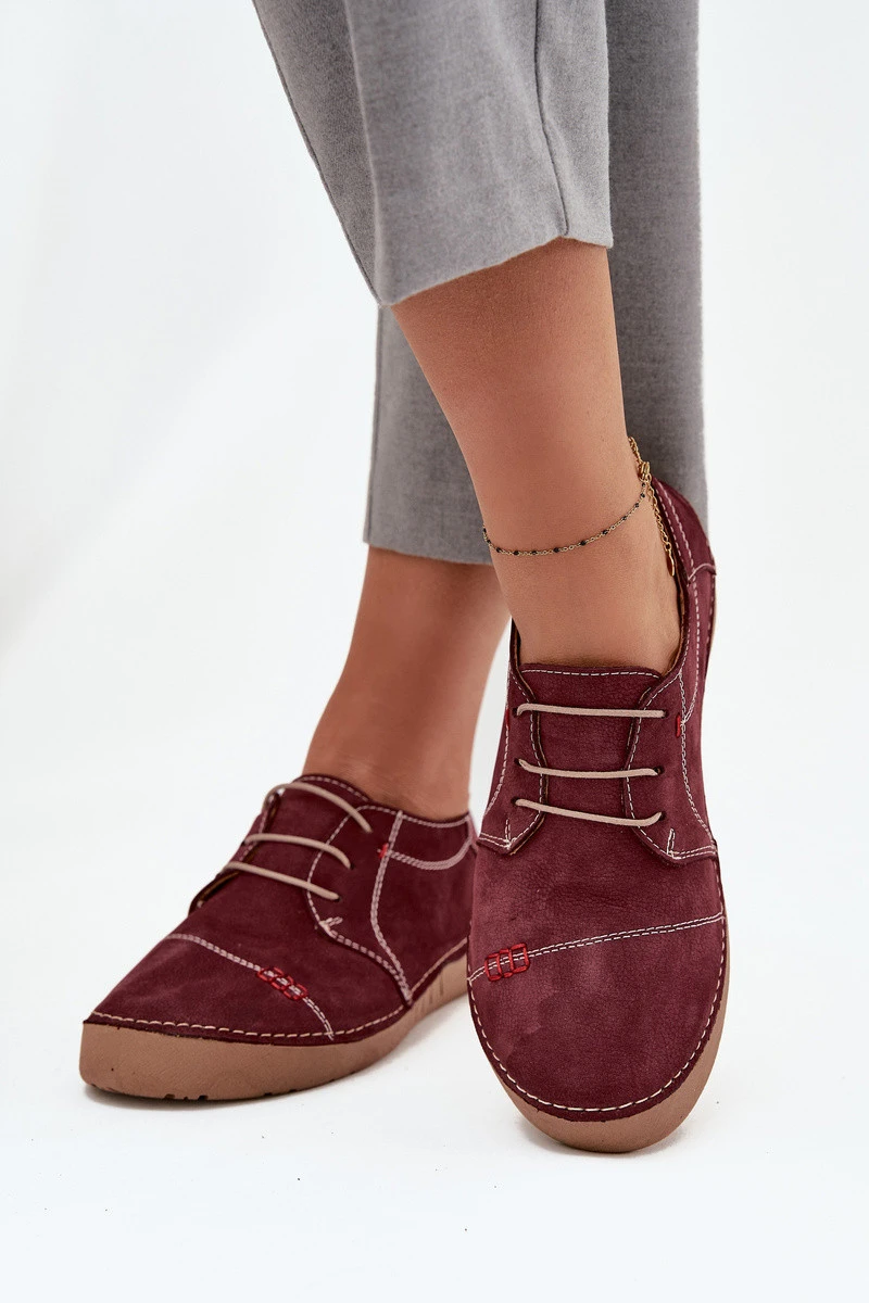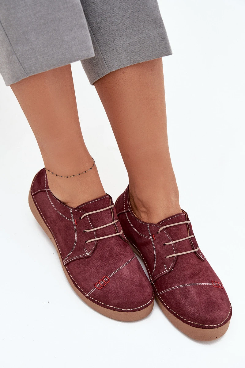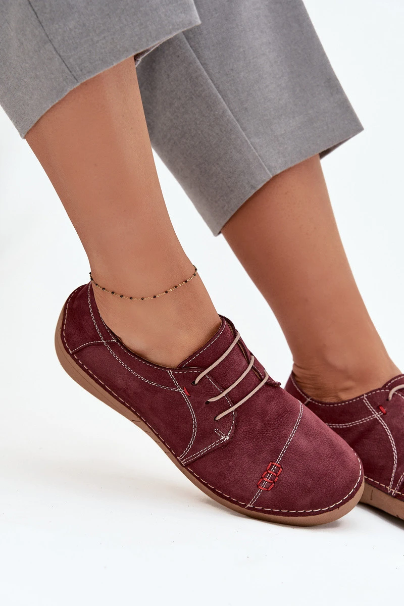 Dámské kožené polobotky s prošitím Artiker – bordó