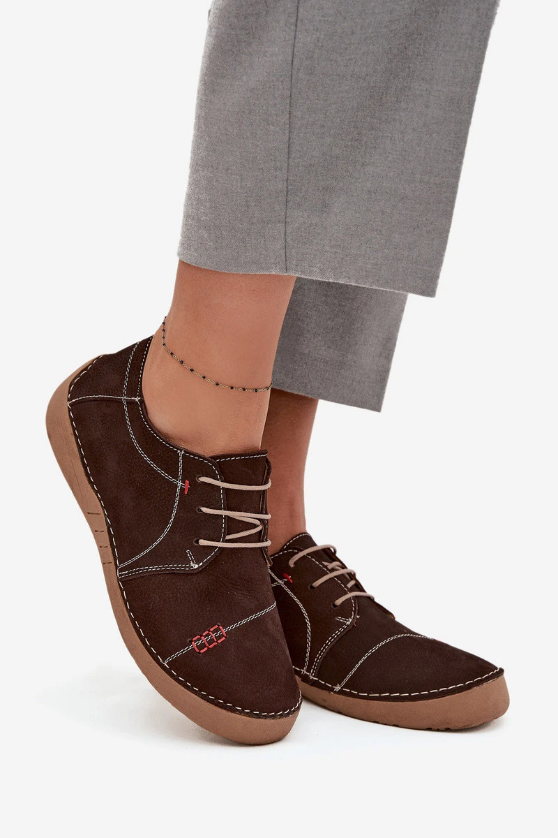 Dámské kožené polobotky s prošitím Artiker – hnědé