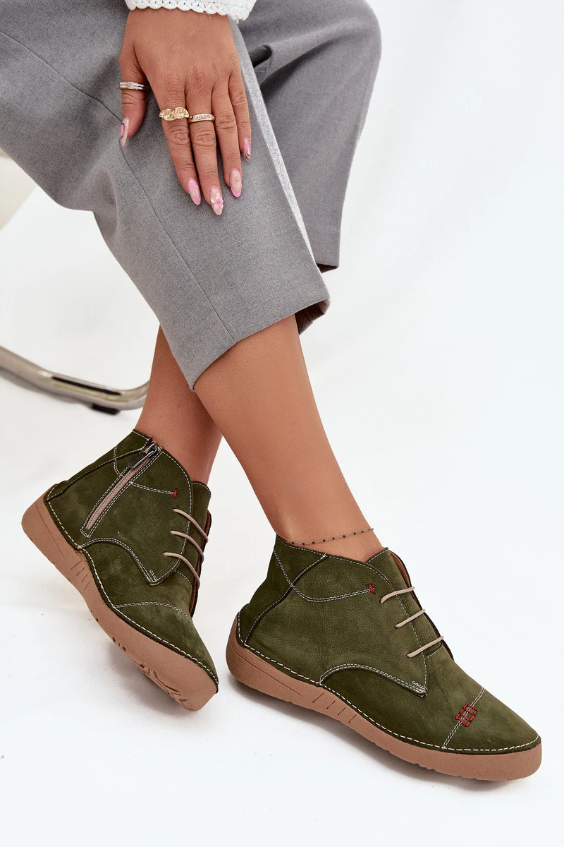 Dámské kožené polobotky s prošitím na zip Artiker – zelené