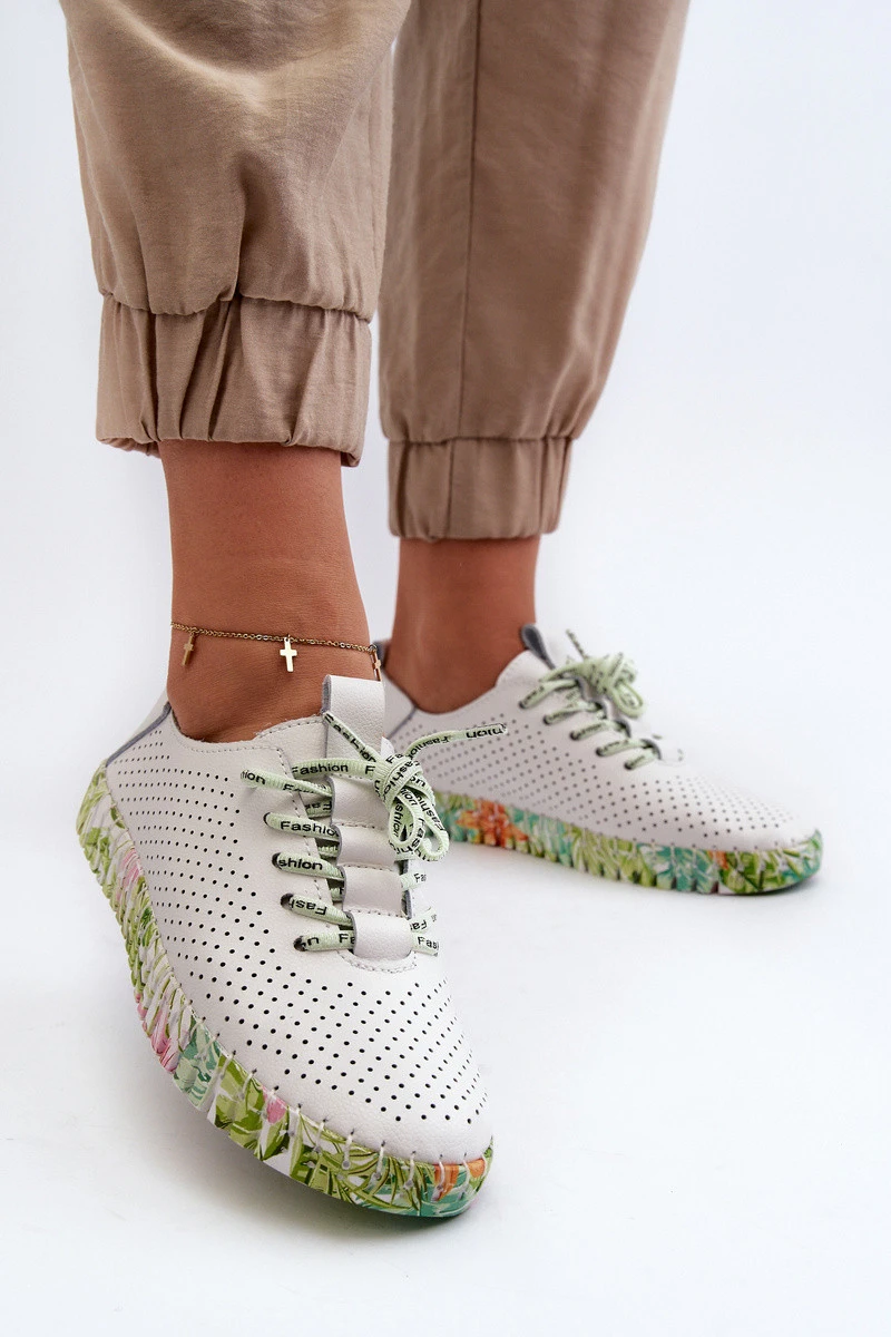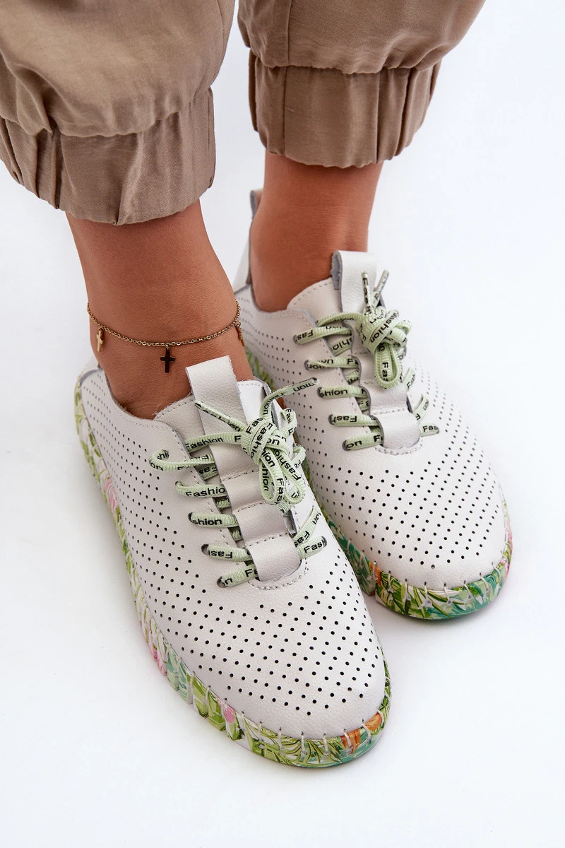 Dámské kožené polobotky se šněrováním bílé Farnalea