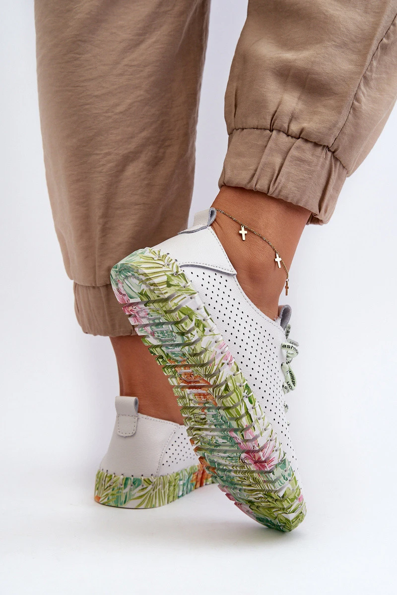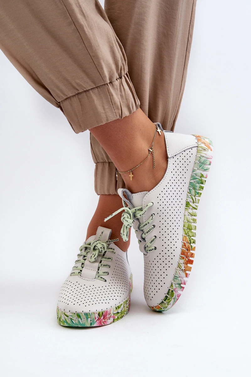 Dámské polobotky vyrobené z přírodní kůže. Tento model se vyznačuje vzorovanou podrážkou. Elastické šněrování s ozdobným nápisem. Zaoblené špičky. Měkká komfortní stélka zajistí pohodlí každým krokem. Ideální pro každodenní stylizace. Při výběru velikosti se řiďte tabulkou velikostí.