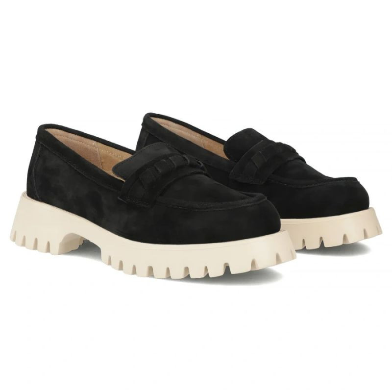 Dámské kožené polobotky semišové lordy černé Filippo DP7554