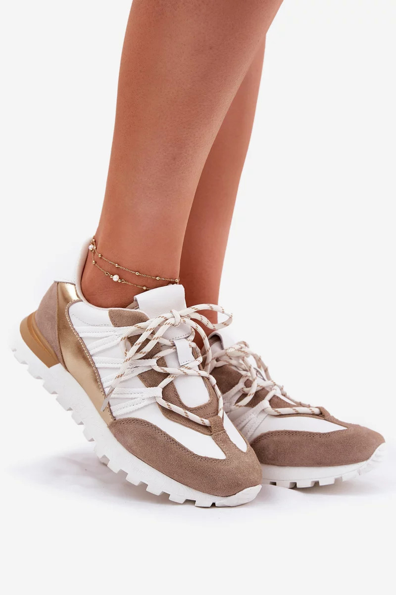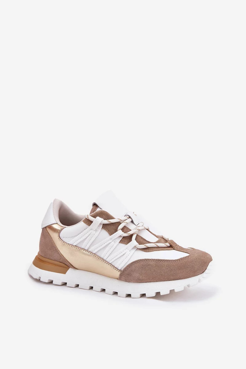 Dámské kožené polobotky sneakers Artiker – béžovo/zlaté