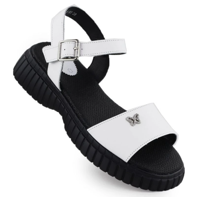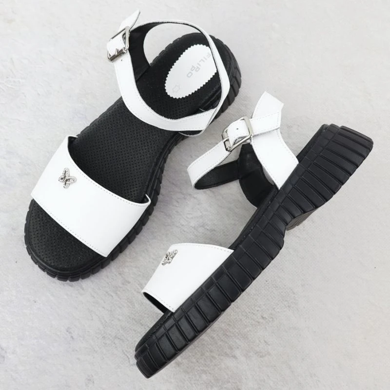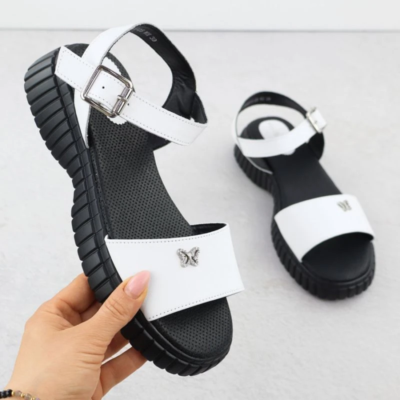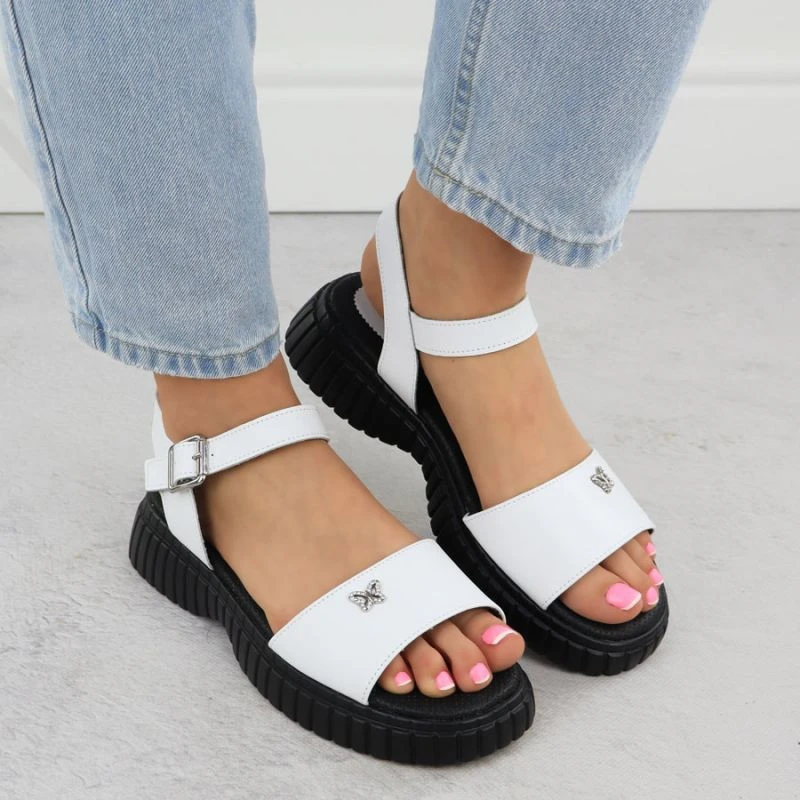 Dámské kožené sandály na hrubé podrážce s motýlím vzorem bílé Filippo DS6811