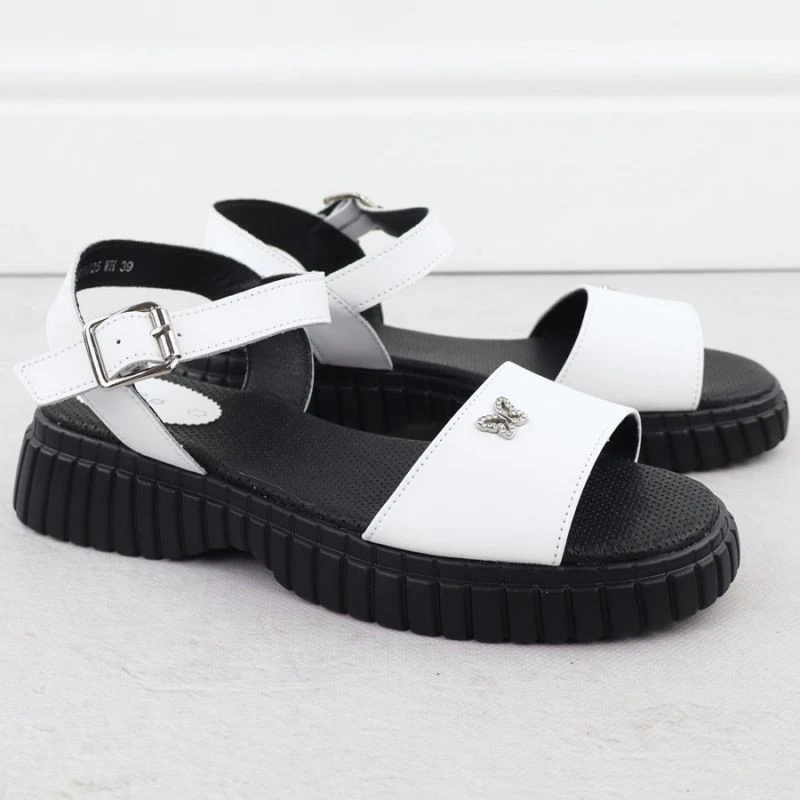 Přidání recenze k Dámské kožené sandály na hrubé podrážce s motýlím vzorem bílé Filippo DS6811