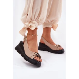 Dámské Kožené Sandály Na Klínku A Platformě S Dekorací model 21693498 Béžové - Artiker