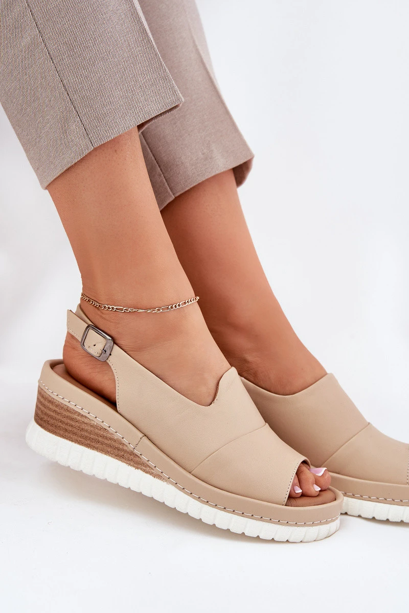 Dámské kožené sandály na klínu model 21696009 béžové - Artiker