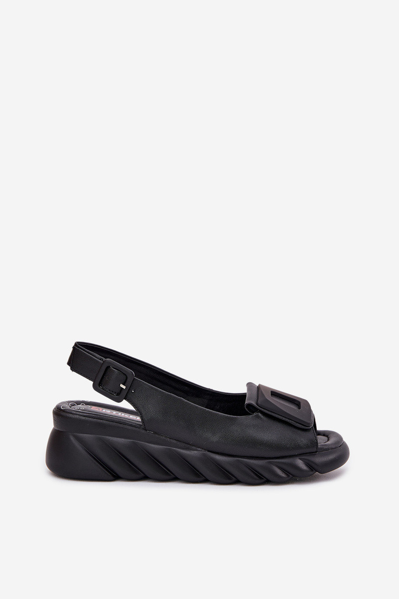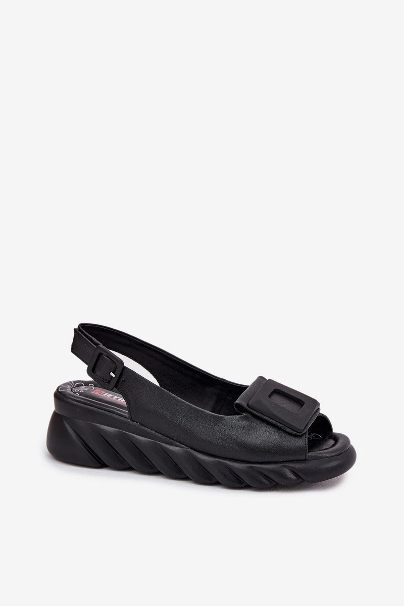 Dámské kožené sandály na klínu s ozdobou Artiker Černé 56C2156