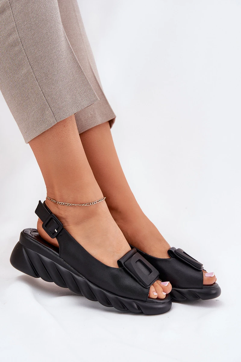 Přidání recenze k Dámské kožené sandály na klínu s ozdobou Artiker Černé 56C2156