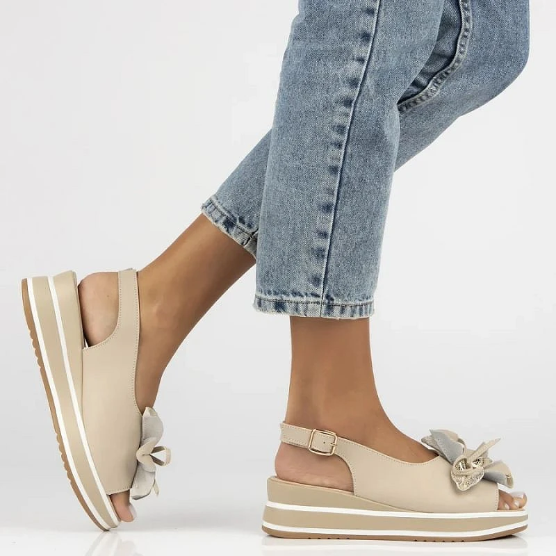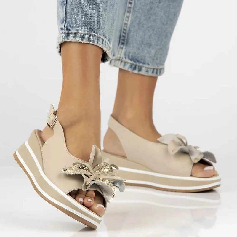 Dámské kožené sandály na platformě béžové Filippo DS7045/26