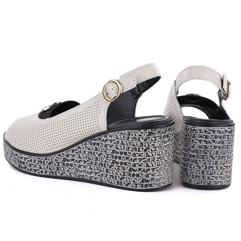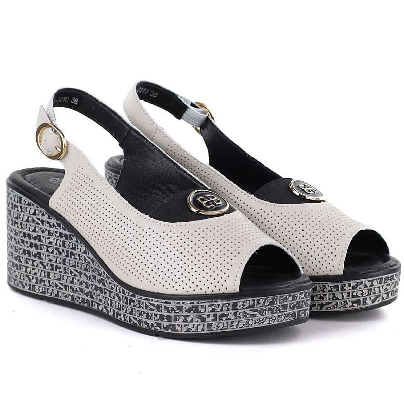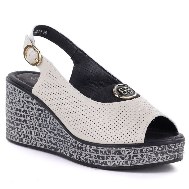 Dámské kožené sandály na platformě béžové S.Barski model 22099414