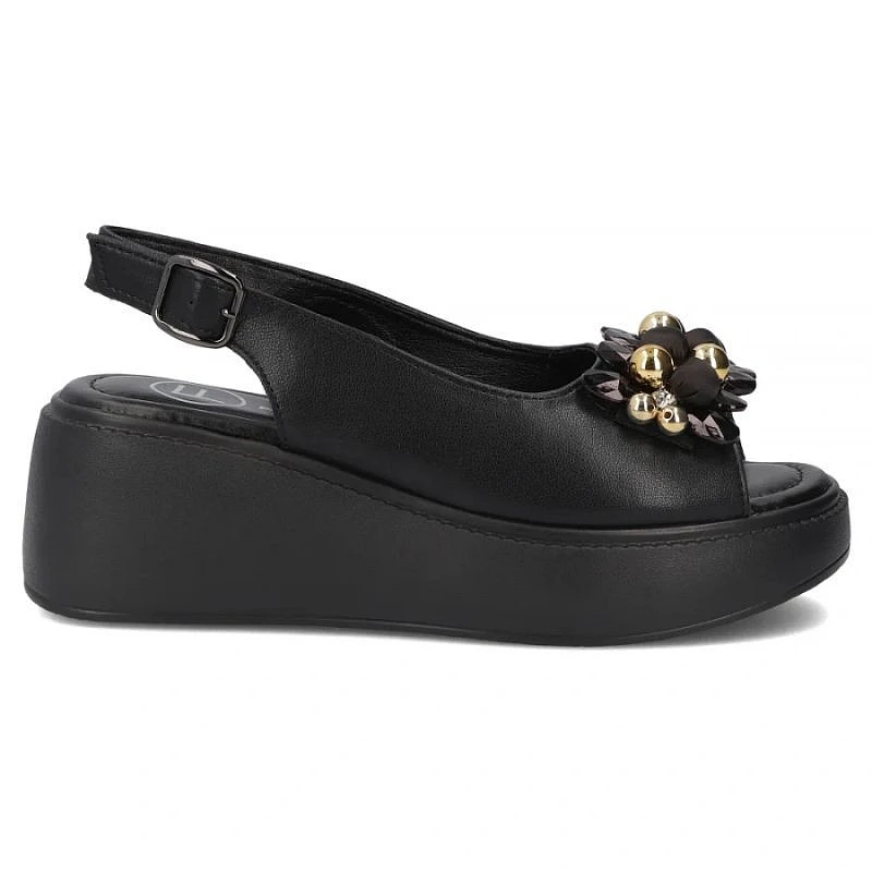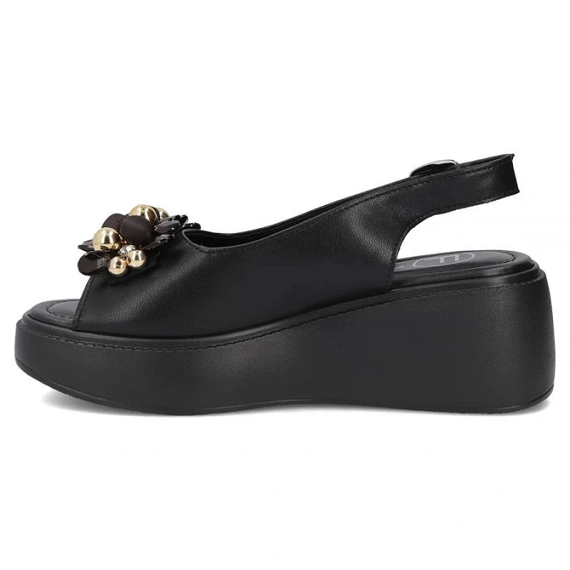 Sandály jsou posazeny na pohodlném klínu, který zaručuje dokonalý doplněk letní dámské stylizace,