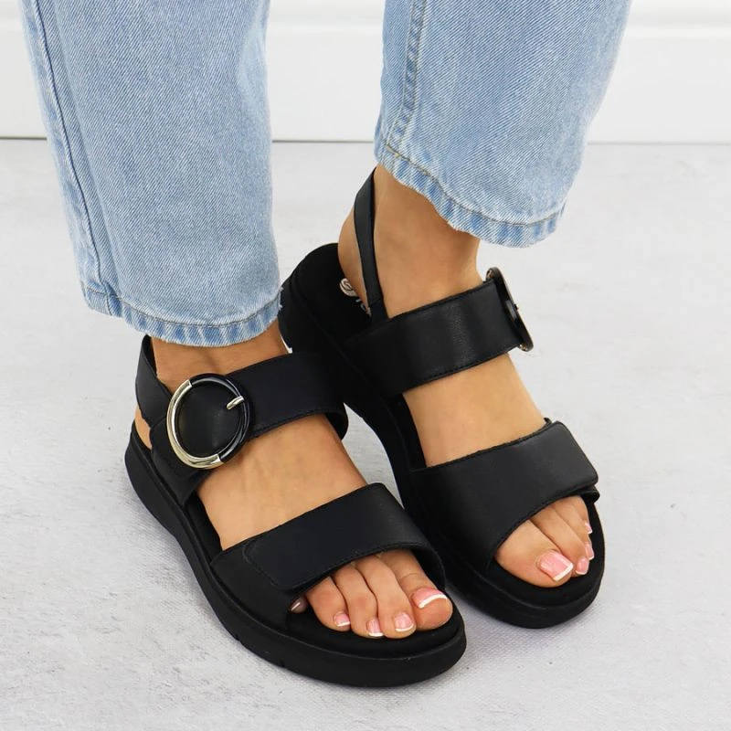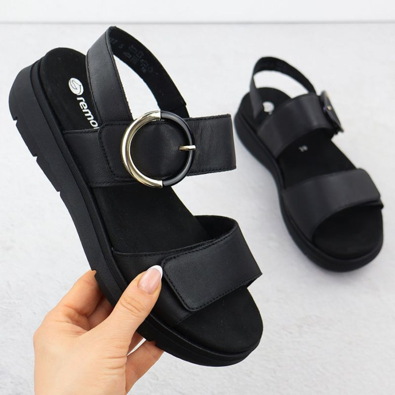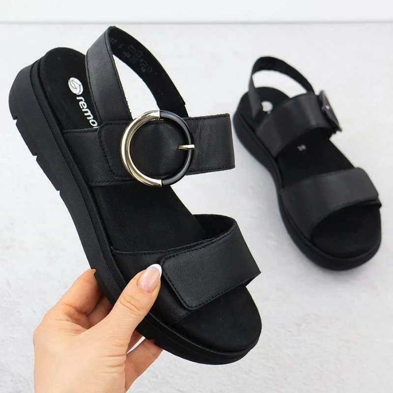 Dámské kožené sandály na platformě černé model 21904806 - Remonte