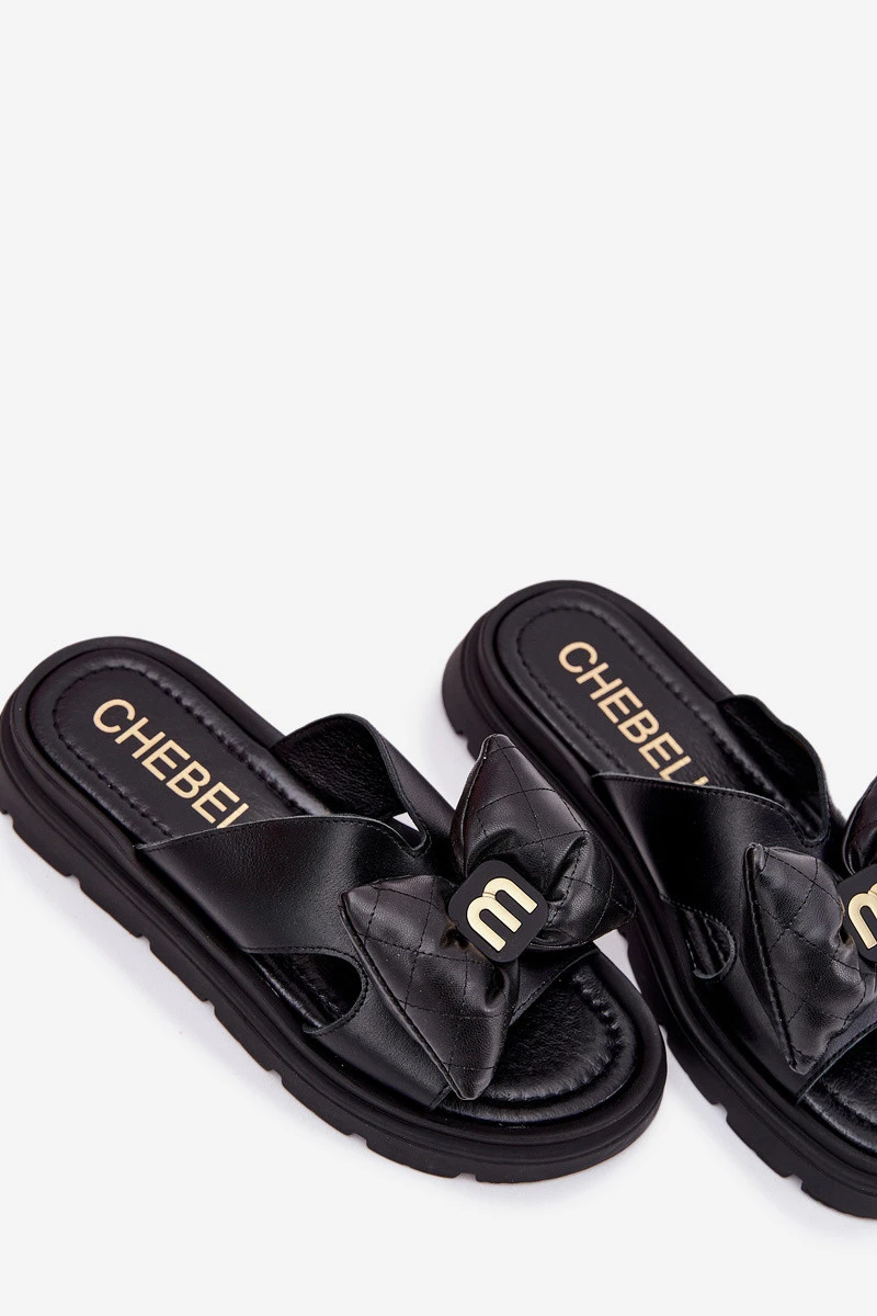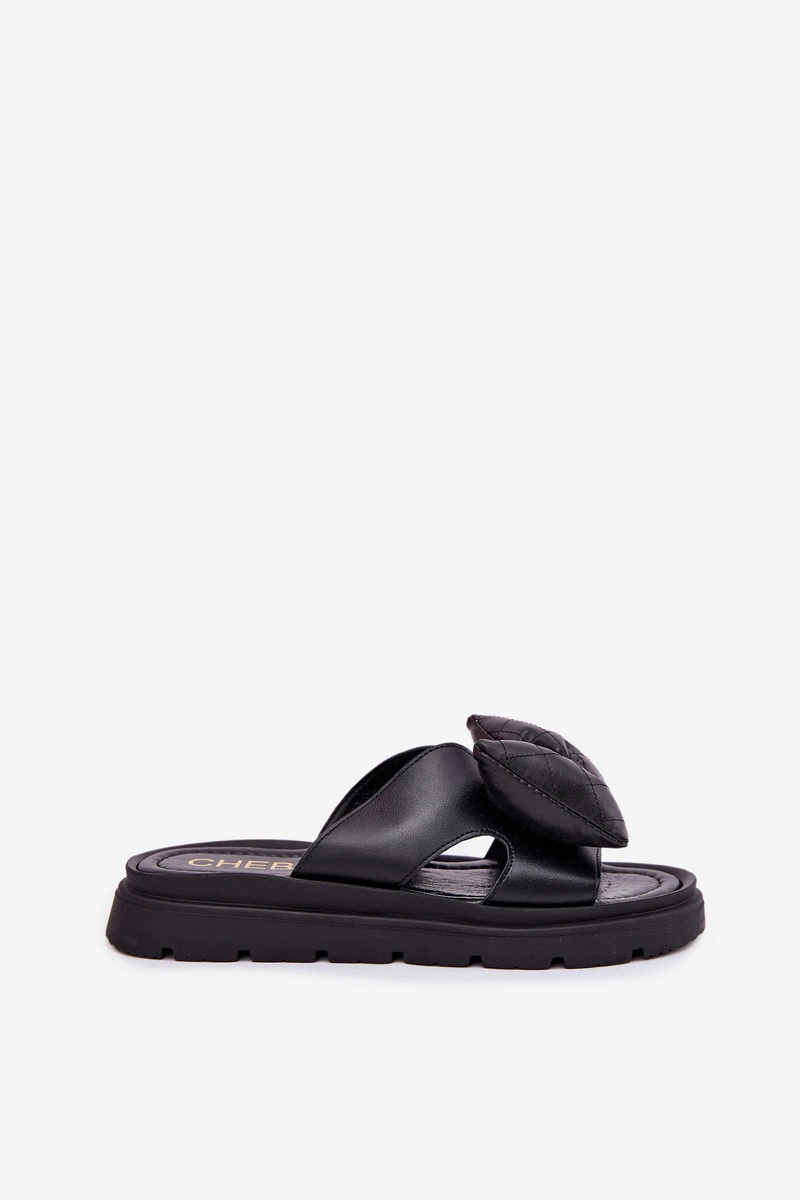 Dámské kožené sandály na platformě s mašlí CheBello 4647 černé