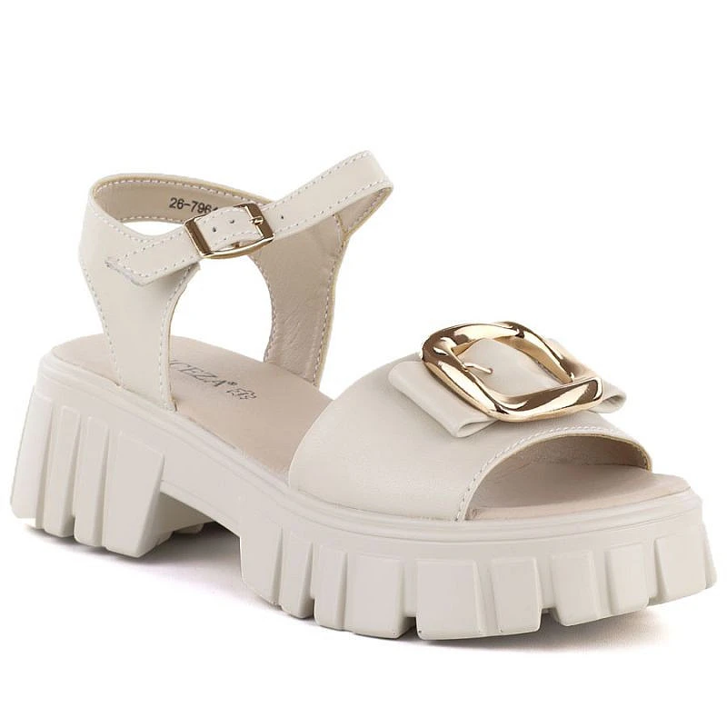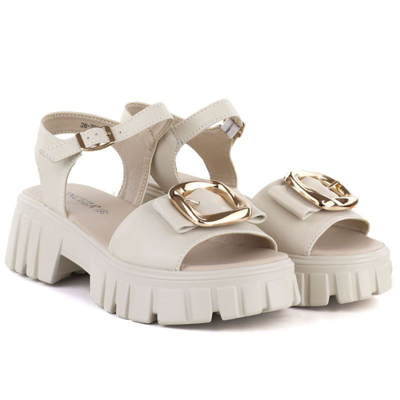 Dámské kožené sandály na platformě se zdobením béžové barvy Vinceza 26-79611
