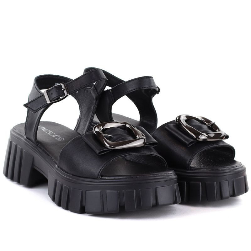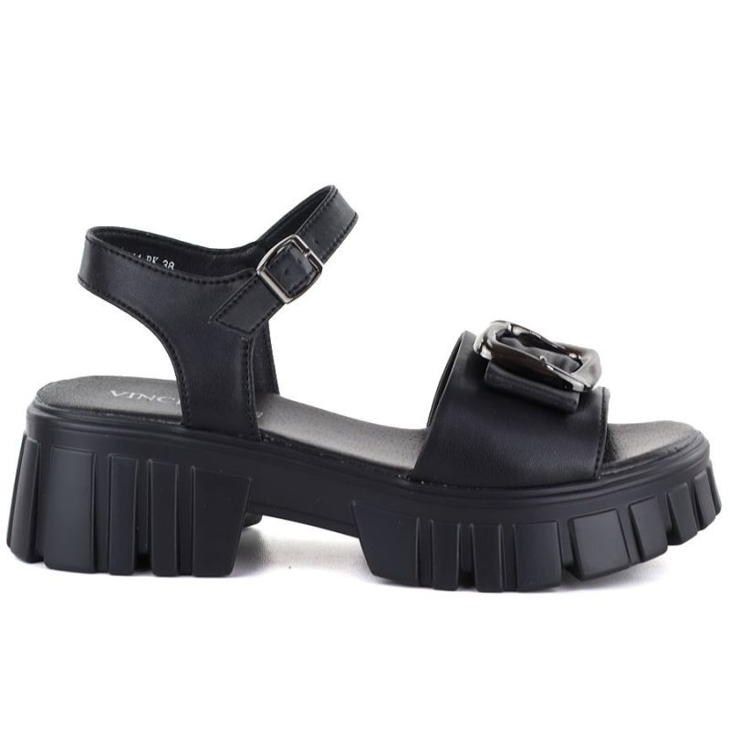 Dámské kožené sandály na platformě se zdobením černé Vinceza 26-79611