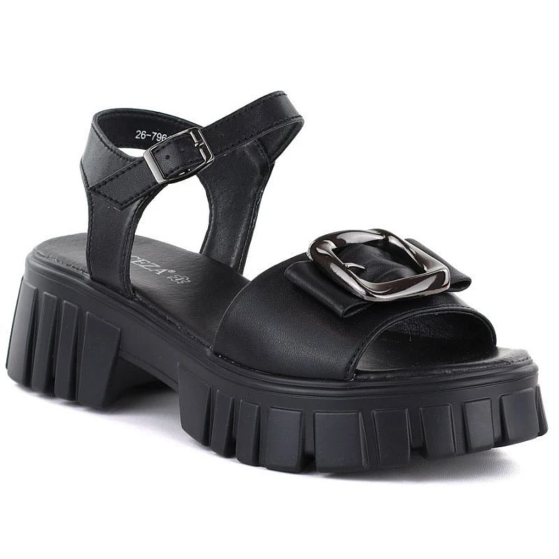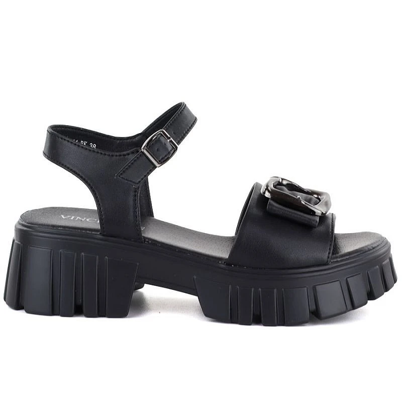 Přidání recenze k Dámské kožené sandály na platformě se zdobením černé Vinceza 26-79611