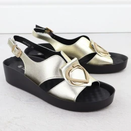 Dámské kožené sandály na platformě zlaté model 21904978 - S.Barski