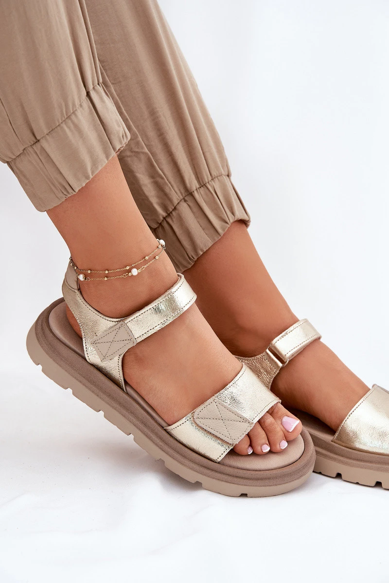 Dámské kožené sandály na platformě zlaté Zazoo 40443