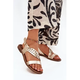 Dámské kožené sandály na plochém podpatku Zazoo 3688 zlaté