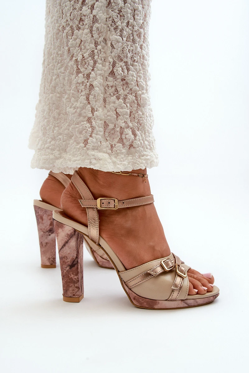 Dámské kožené sandály na podpatku Maciejka 06564-22 béžovo-zlaté