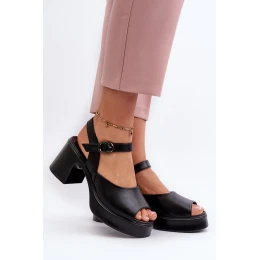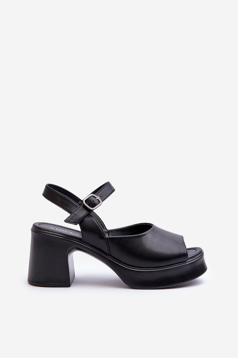 Dámské kožené sandály na podpatku Vinceza 66627 černé