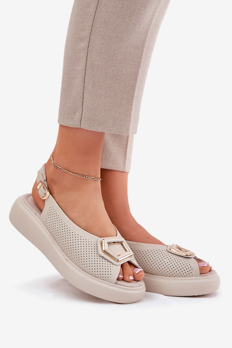 Dámské Kožené Sandály S Dekorací S.Barski LR51-786 Béžové