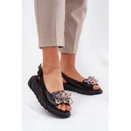 Dámské kožené sandály s krystaly model 21695612 černé - Artiker